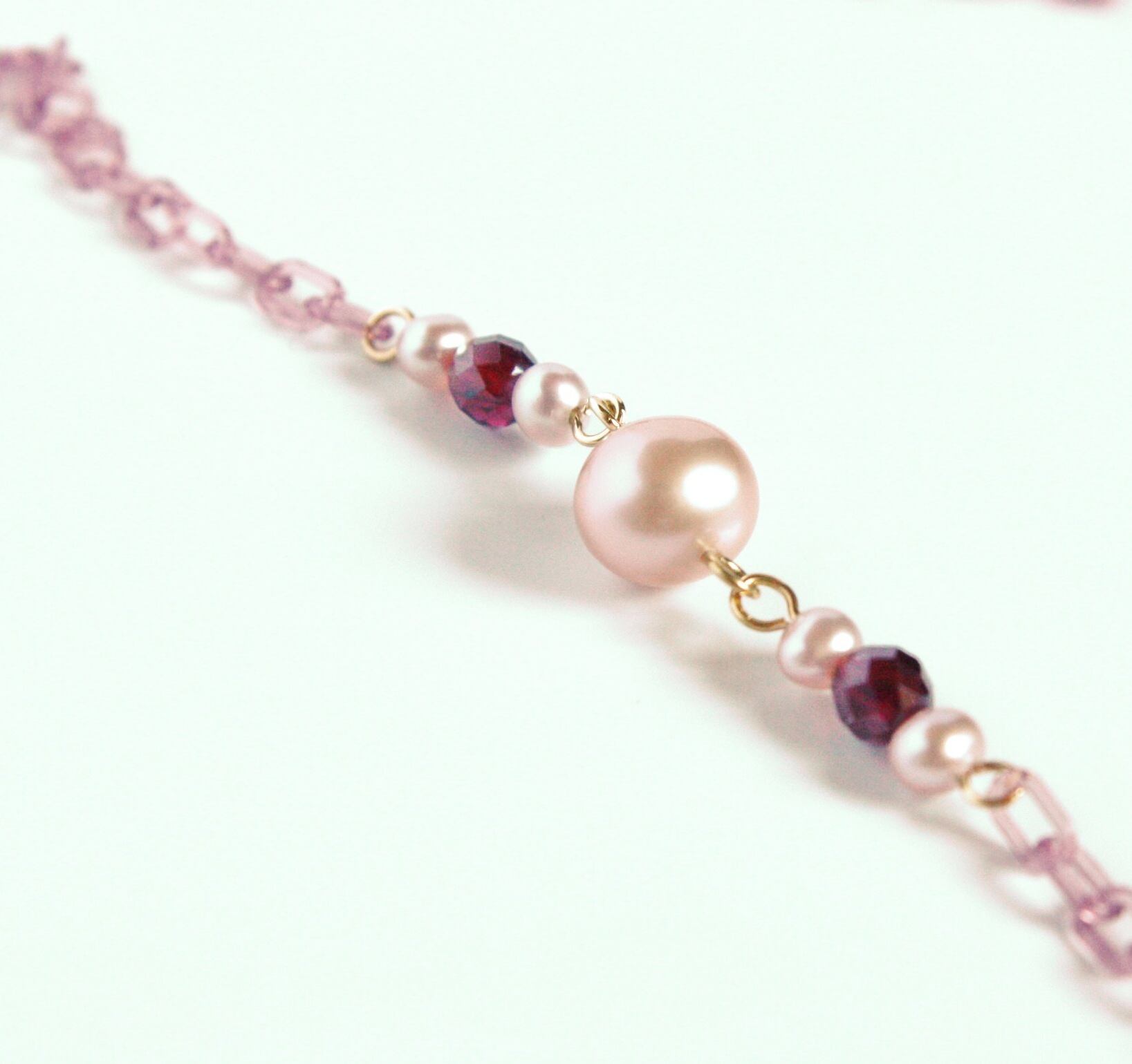プラスチックチェーンロングネックレス 淡水パール(ピンク) ガーネット