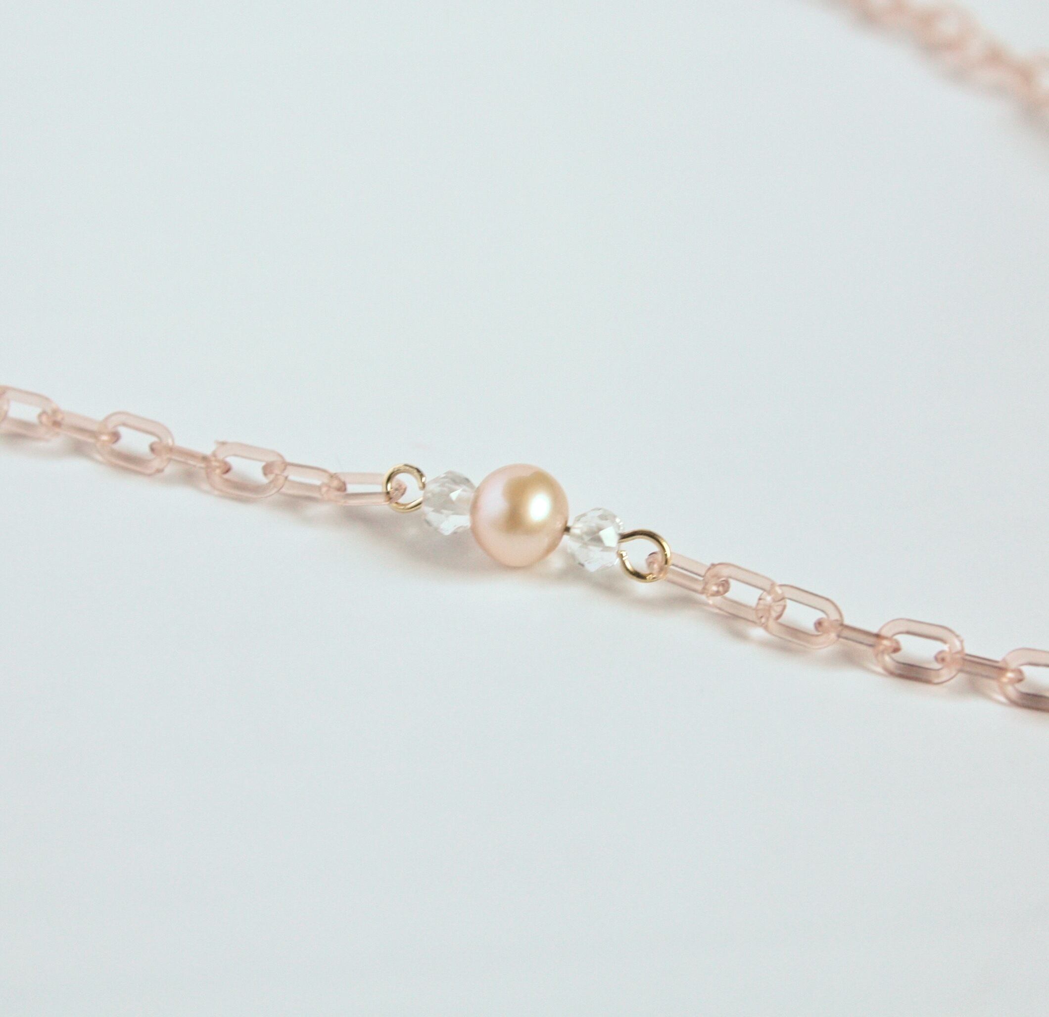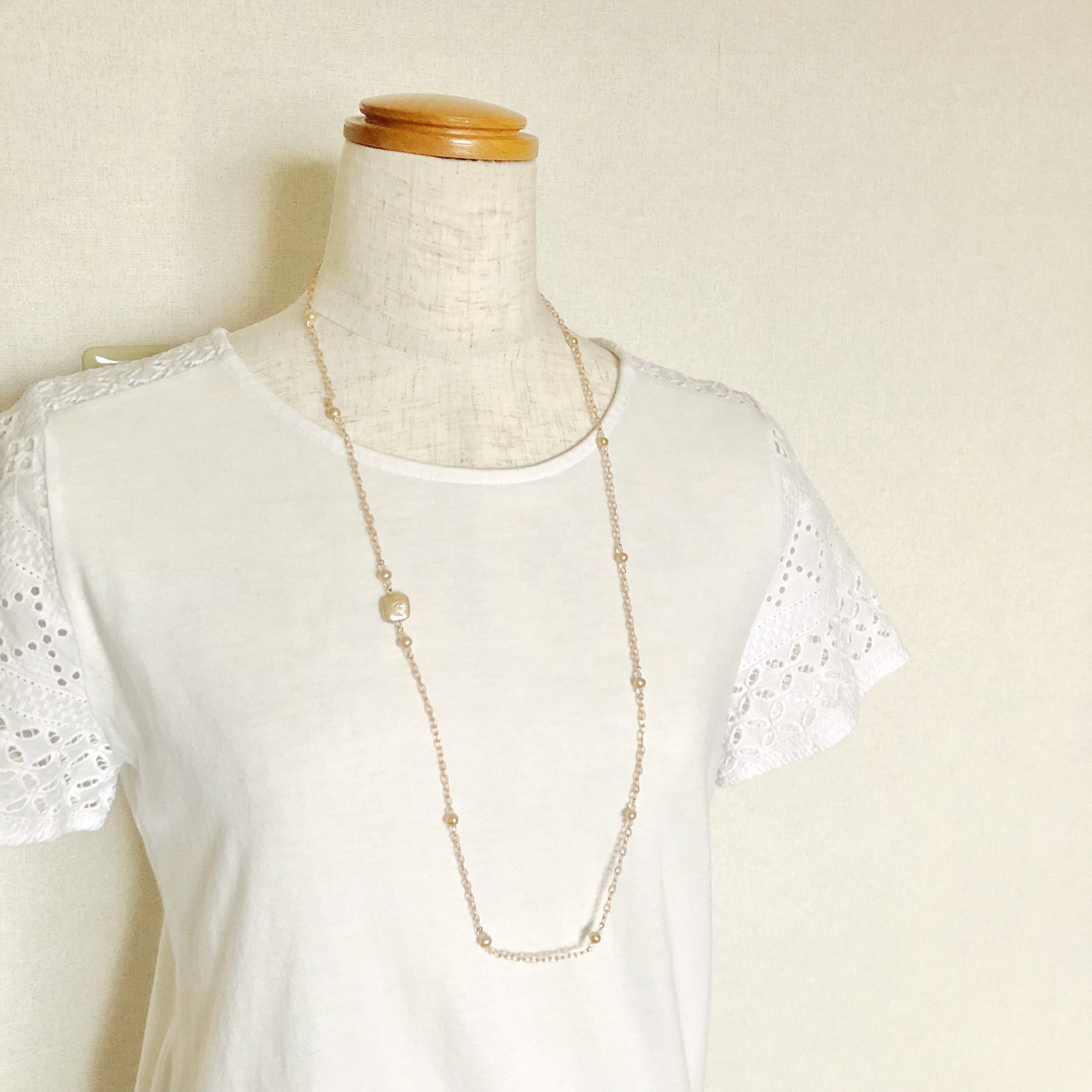 プラスチックチェーンロングネックレス 淡水パール(スクエア)ロッククリスタル