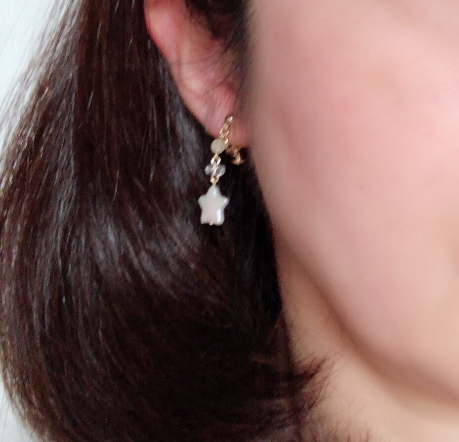 イヤリングには、少しでも痛みの緩和とすべり落ち予防ができますように、金具にかぶせてお使いいただけるゴムカバーをサービスでおつけしております。(4枚目の写真)ただ、効果を保障するものではありません。また、お受け取り後、外れてしまったり紛失されたりしても責任は負いかねますのでご了承くださいませ。
