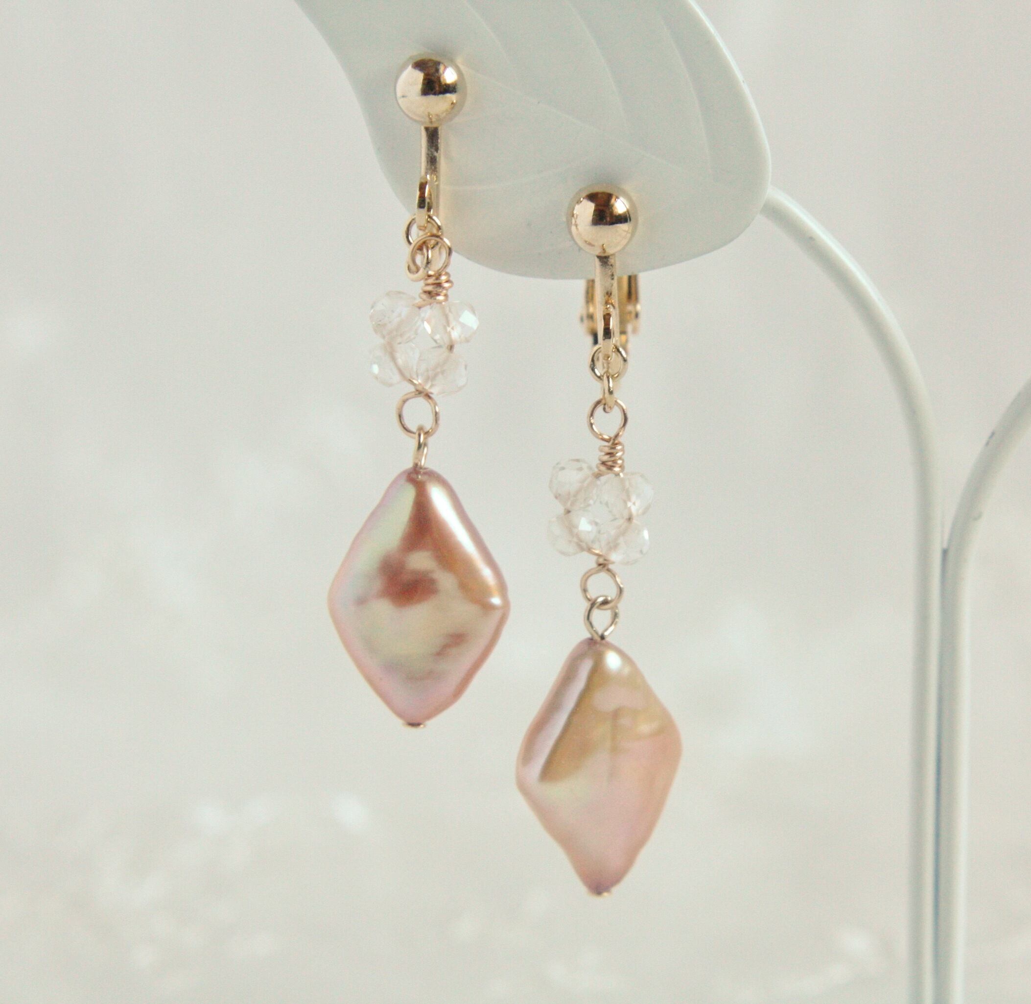 イヤリング 淡水パール(ダイヤ)ロッククリスタル