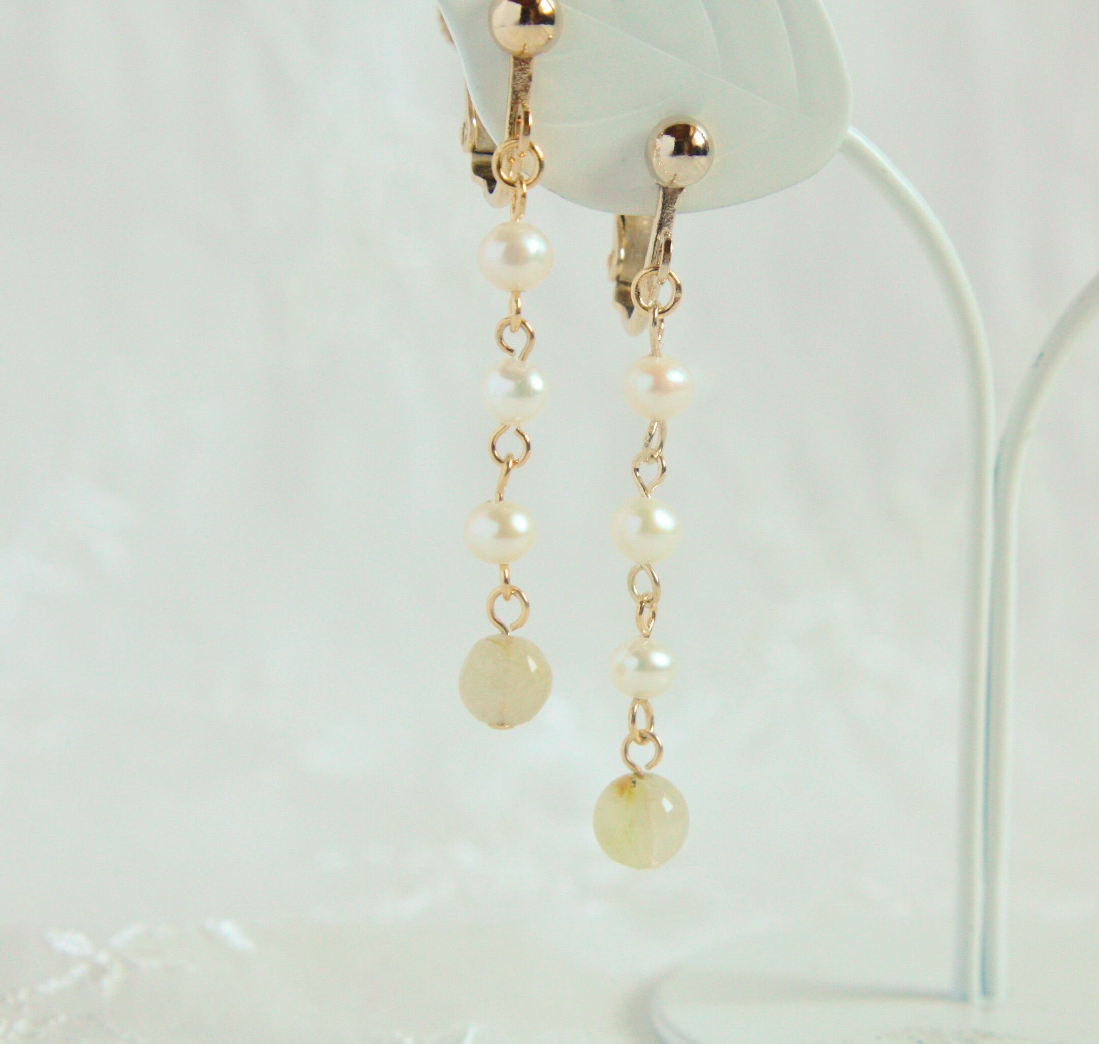 <素材> 天然石(ルチルクオーツ・淡水パール) 合金