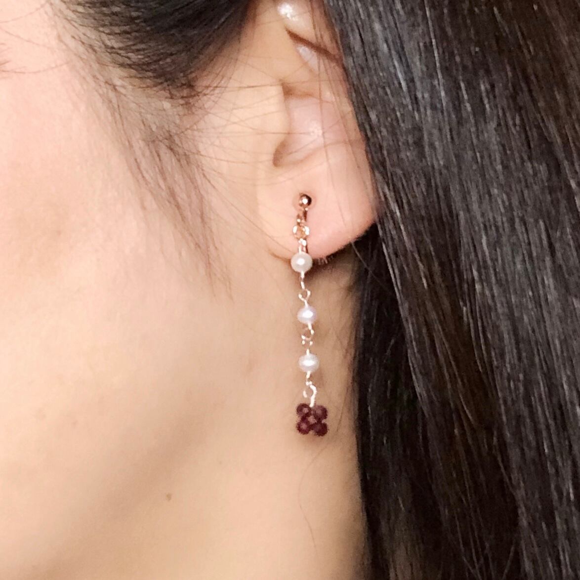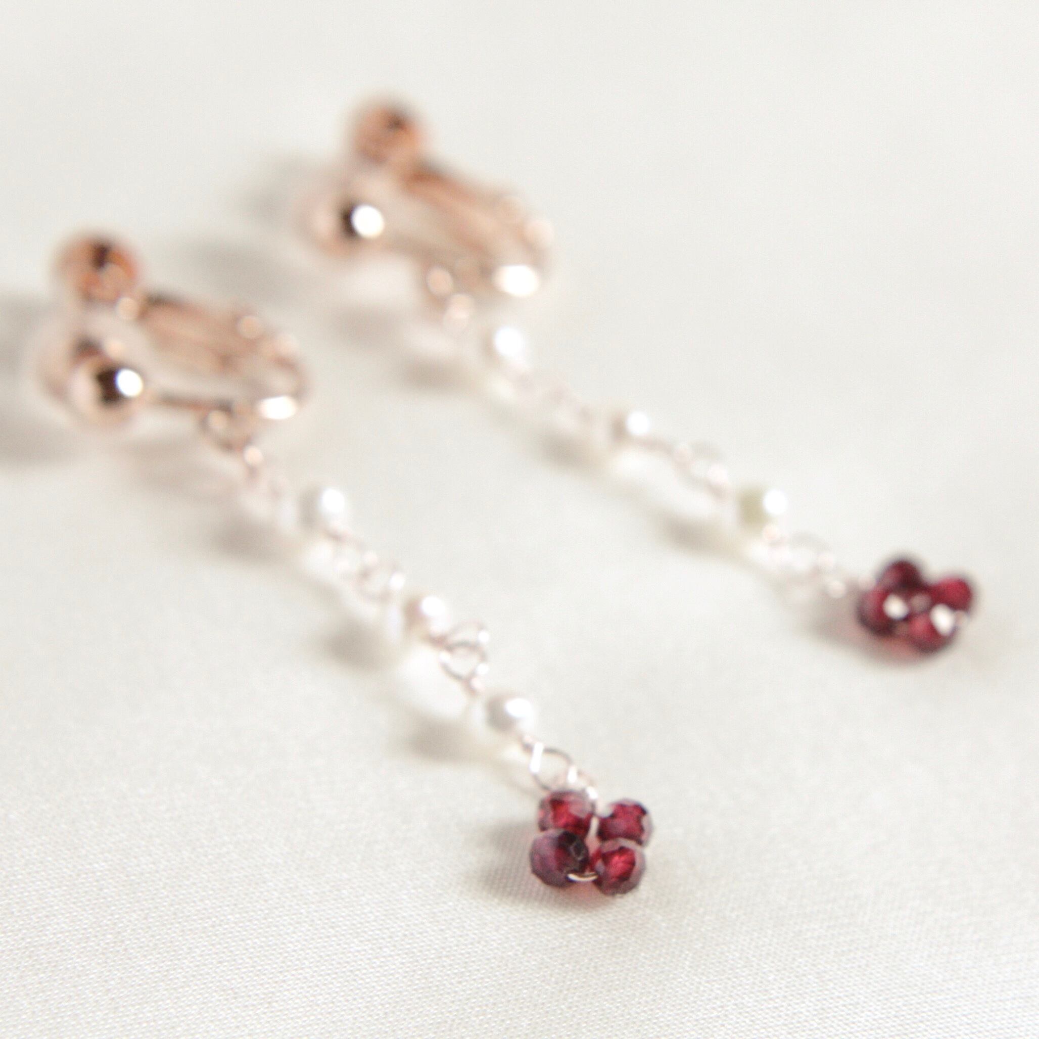 小さなガーネットのお花が揺れる可愛いデザインです。