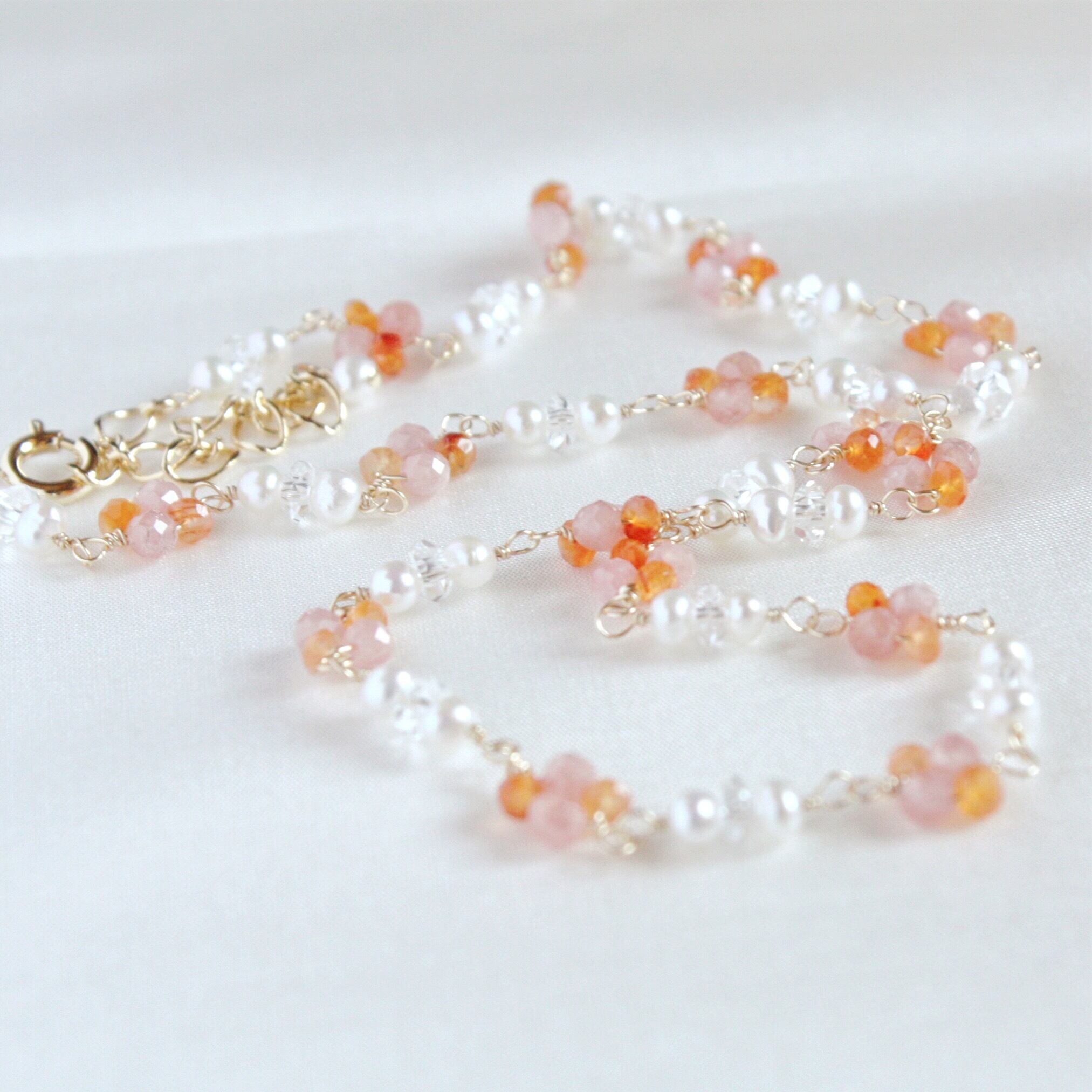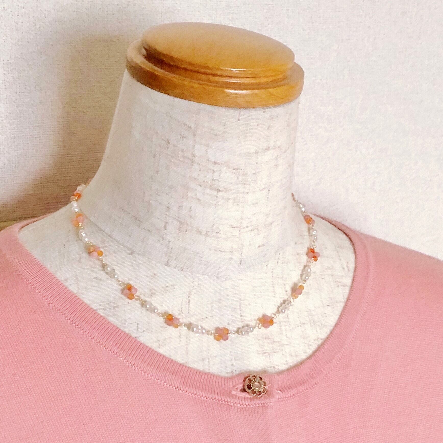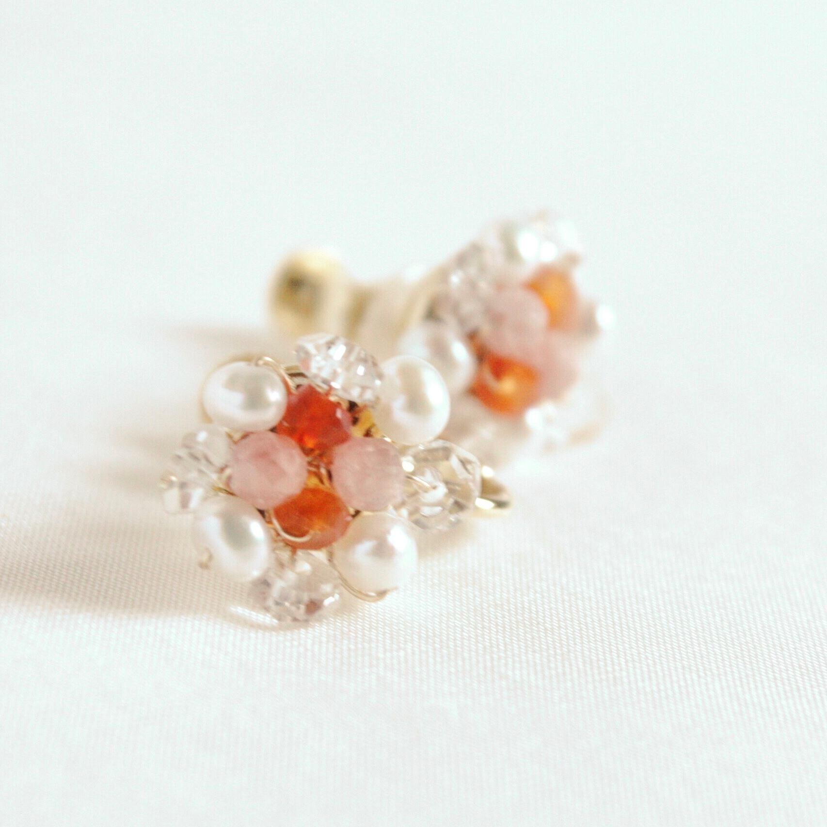 <素材> 天然石(ロードクロサイト・カーネリアン・ロッククリスタル・淡水パール・) 合金