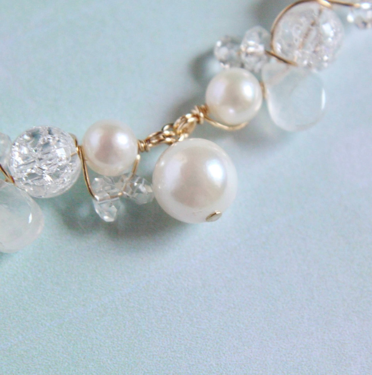 ロッククリスタル、クラッククオーツと合わせてワイヤーモチーフを作り、繋げました。