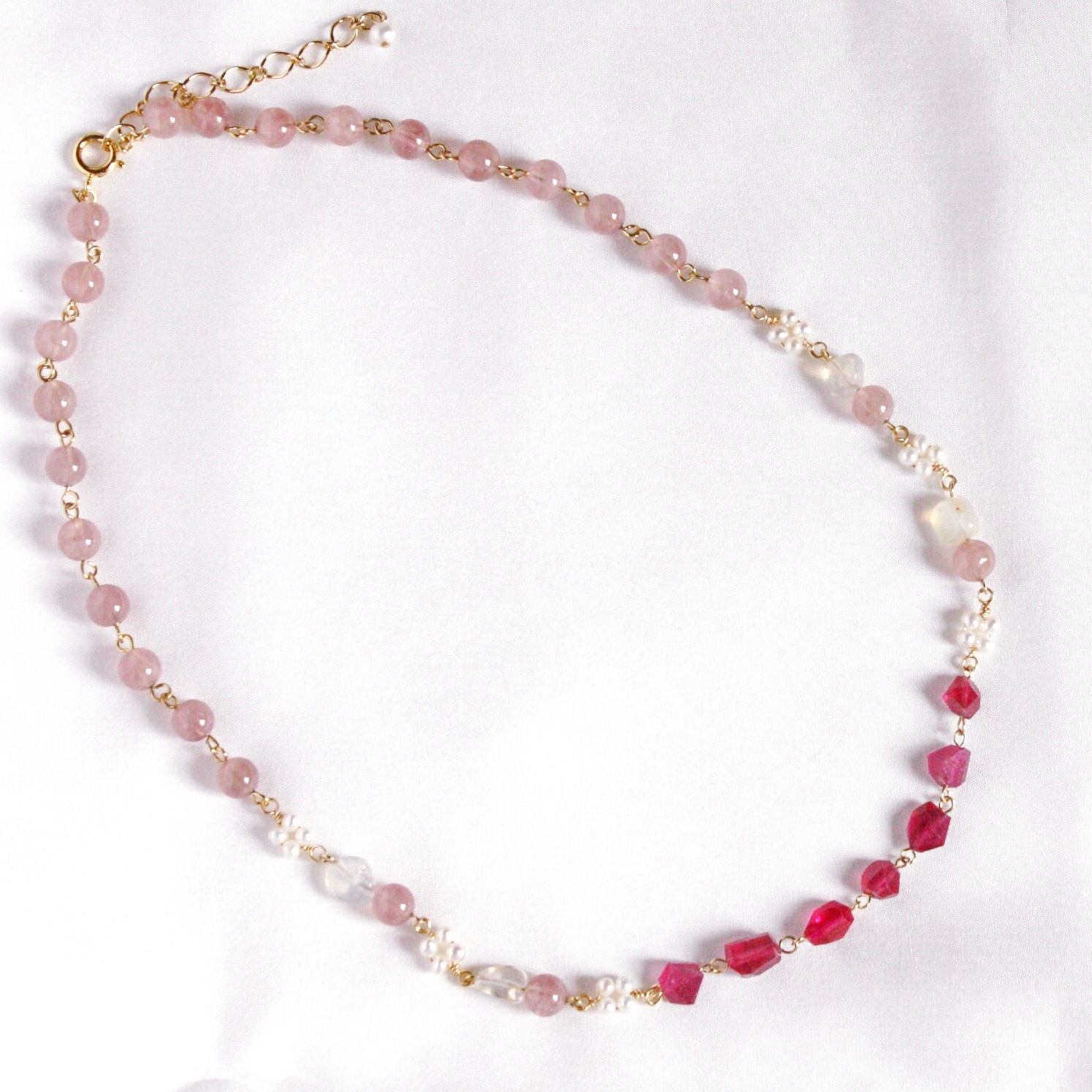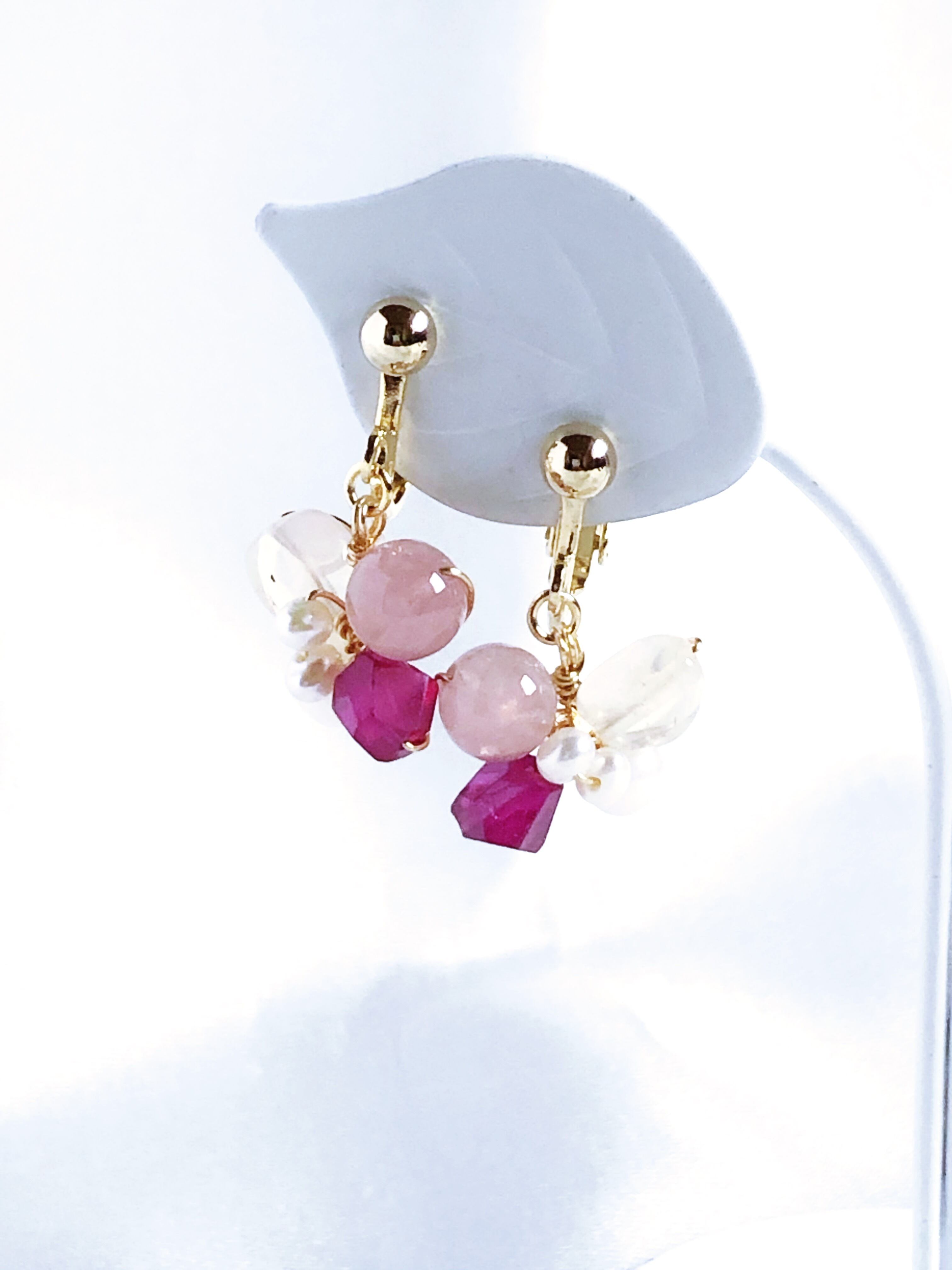 <素材> 天然石(ルビー ローズクオーツ ファイヤオパール 淡水パール) 合金