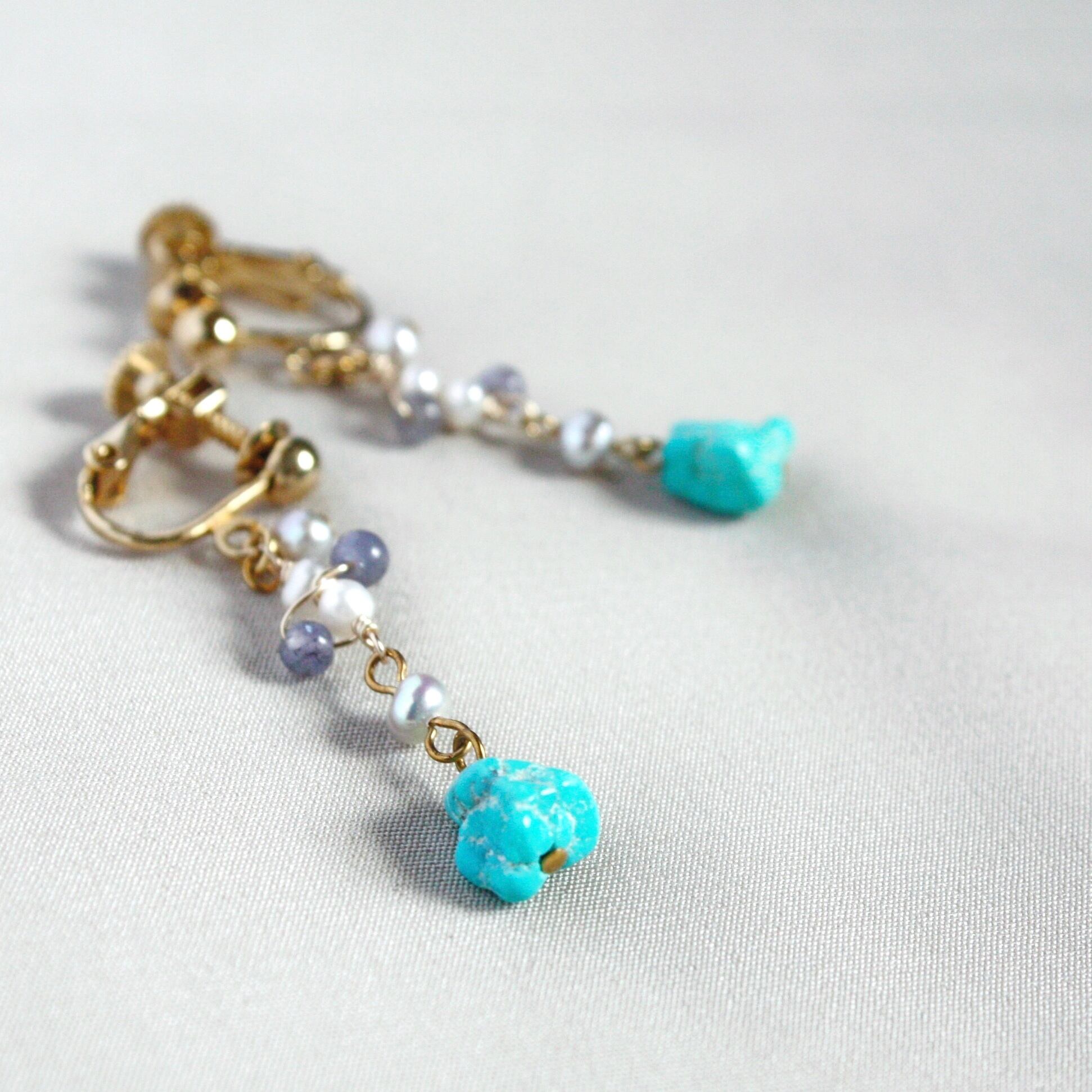 ターコイズとタンザナイトのイヤリング