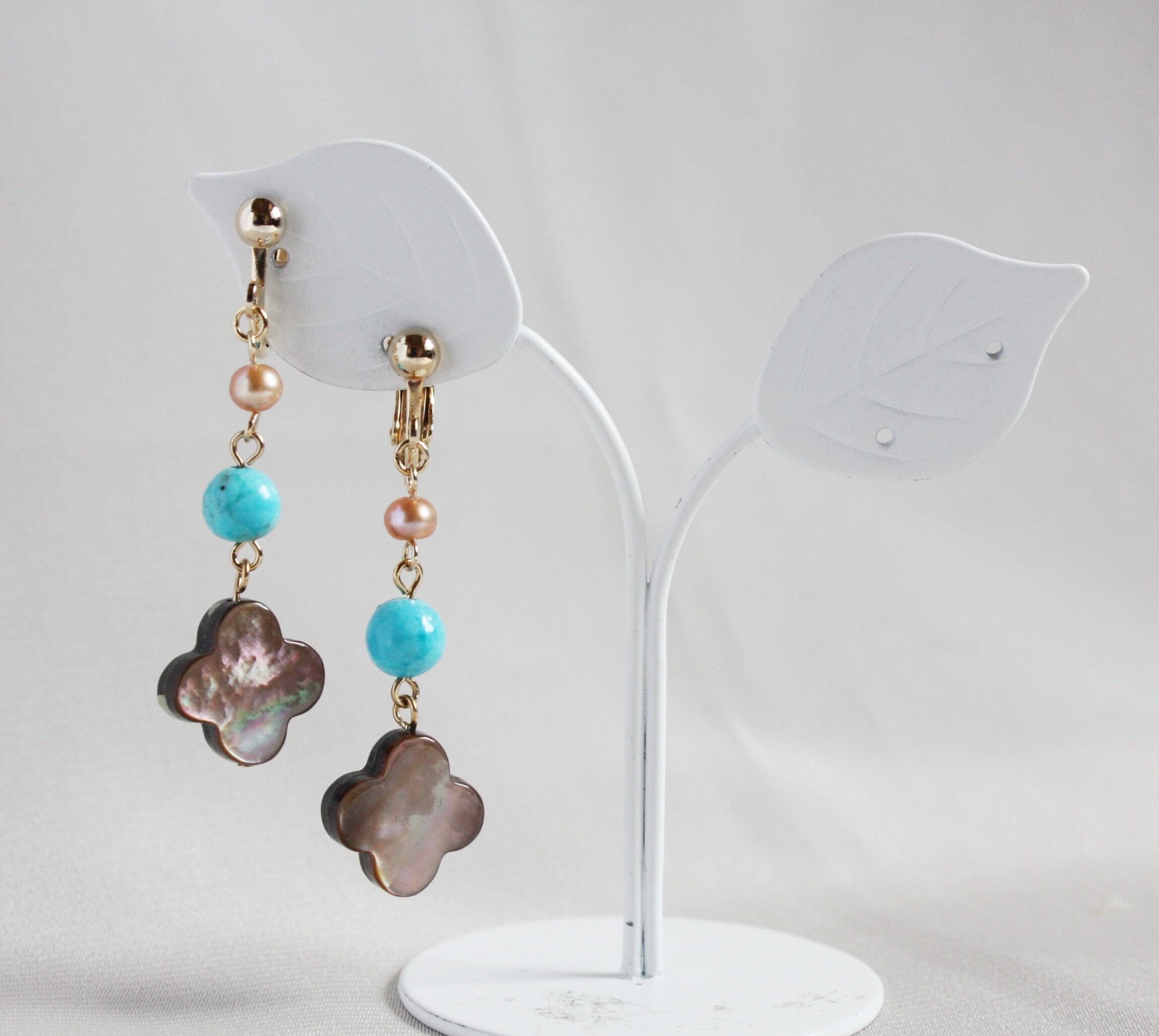 <素材> 天然石(ブラウンシェル ターコイズ 淡水パール) 合金