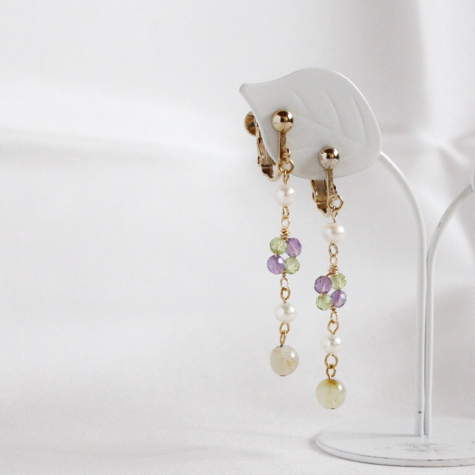 ルチルクオーツ アメジスト ペリドットのイヤリング