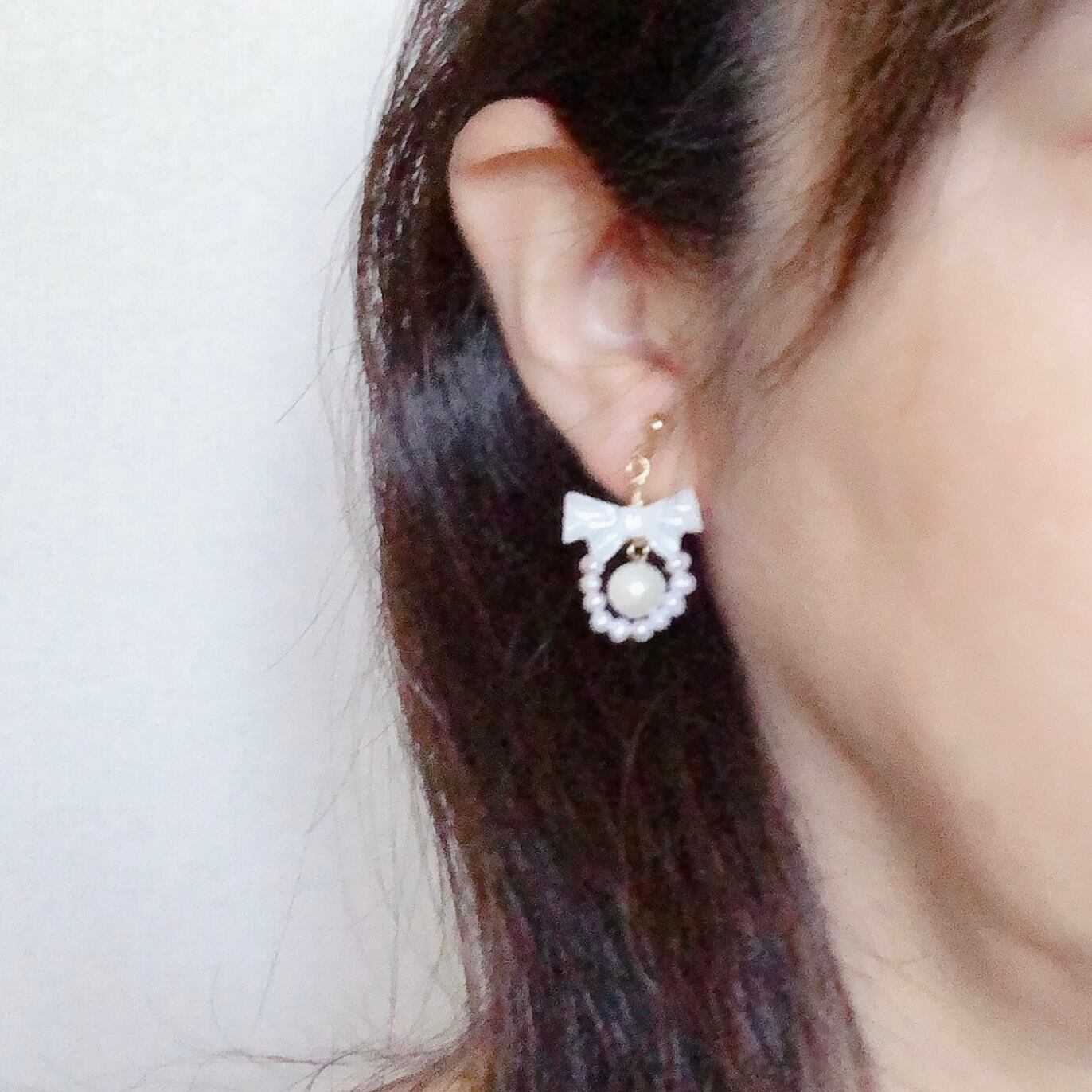 イヤリングには、少しでも痛みの緩和とすべり落ち予防ができますように、金具にかぶせてお使いいただけるゴムカバーをサービスでおつけしております。(5枚目の写真)ただ、効果を保障するものではありません。また、お受け取り後、外れてしまったり紛失されたりしても責任は負いかねますのでご了承くださいませ。