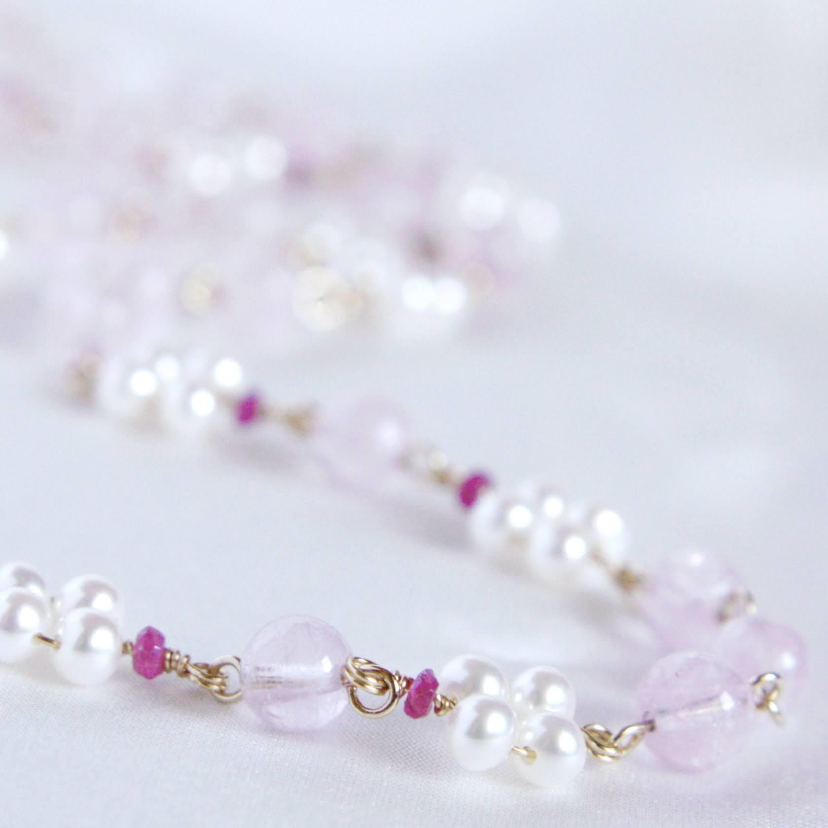 モルガナイトとルビーのネックレス