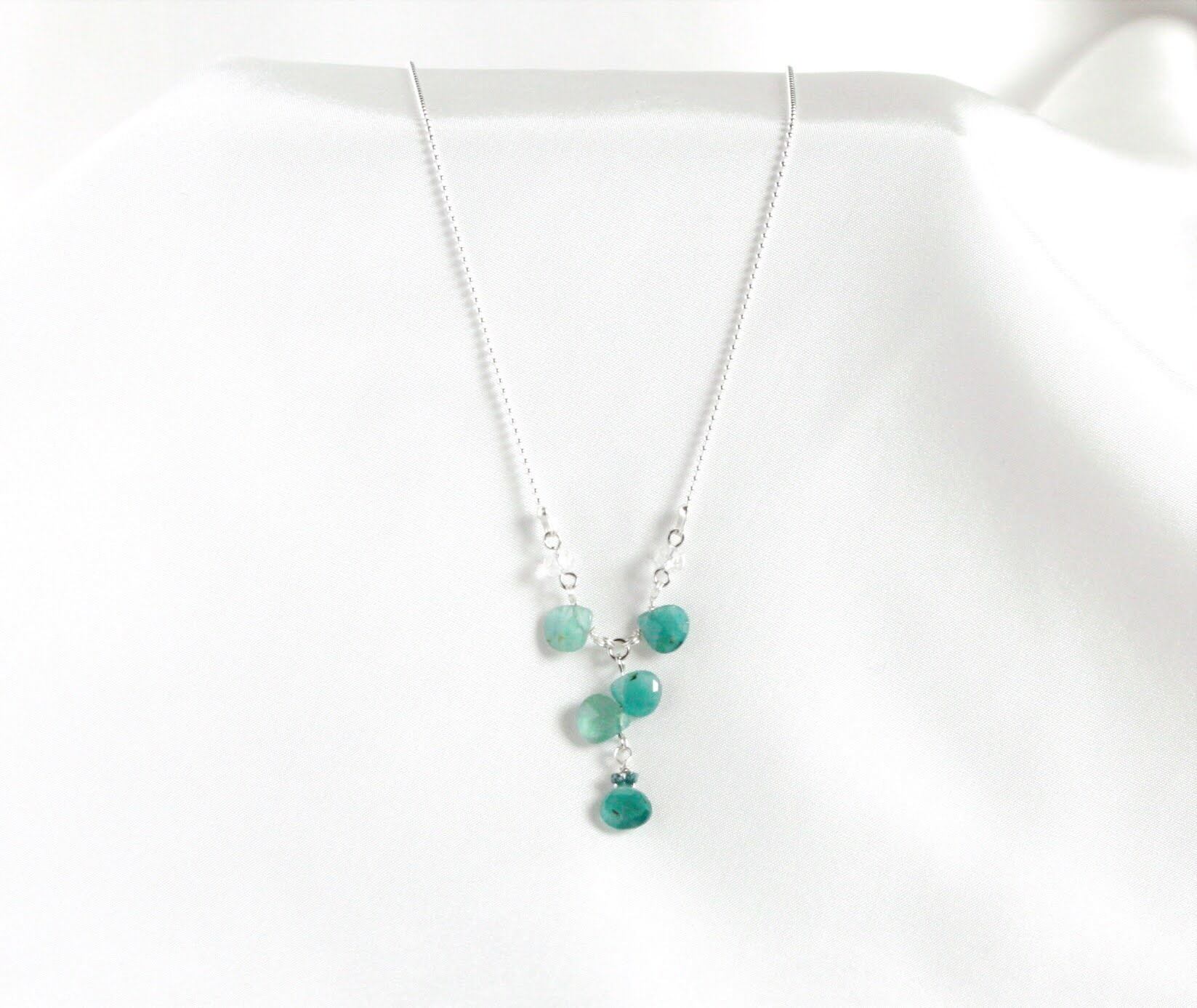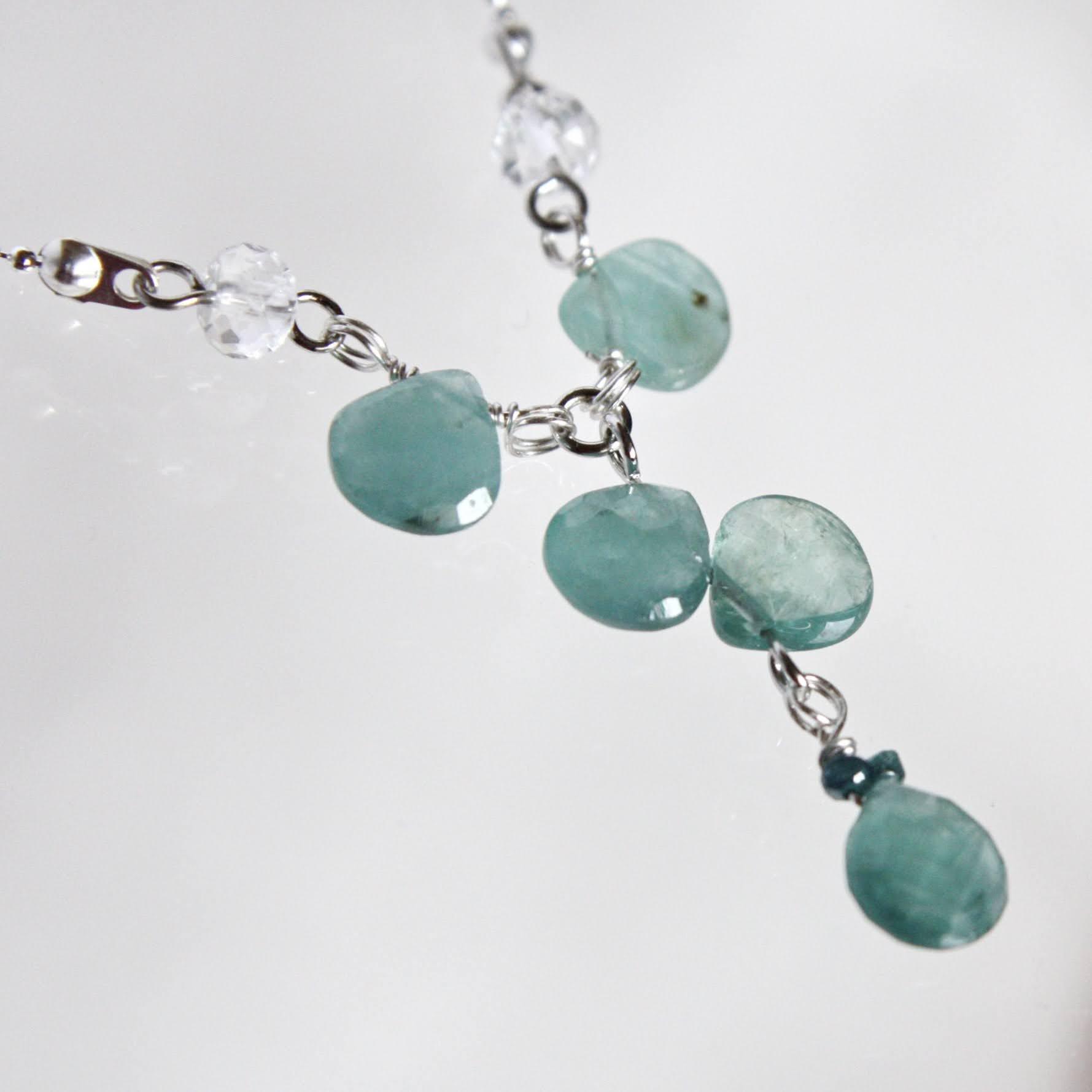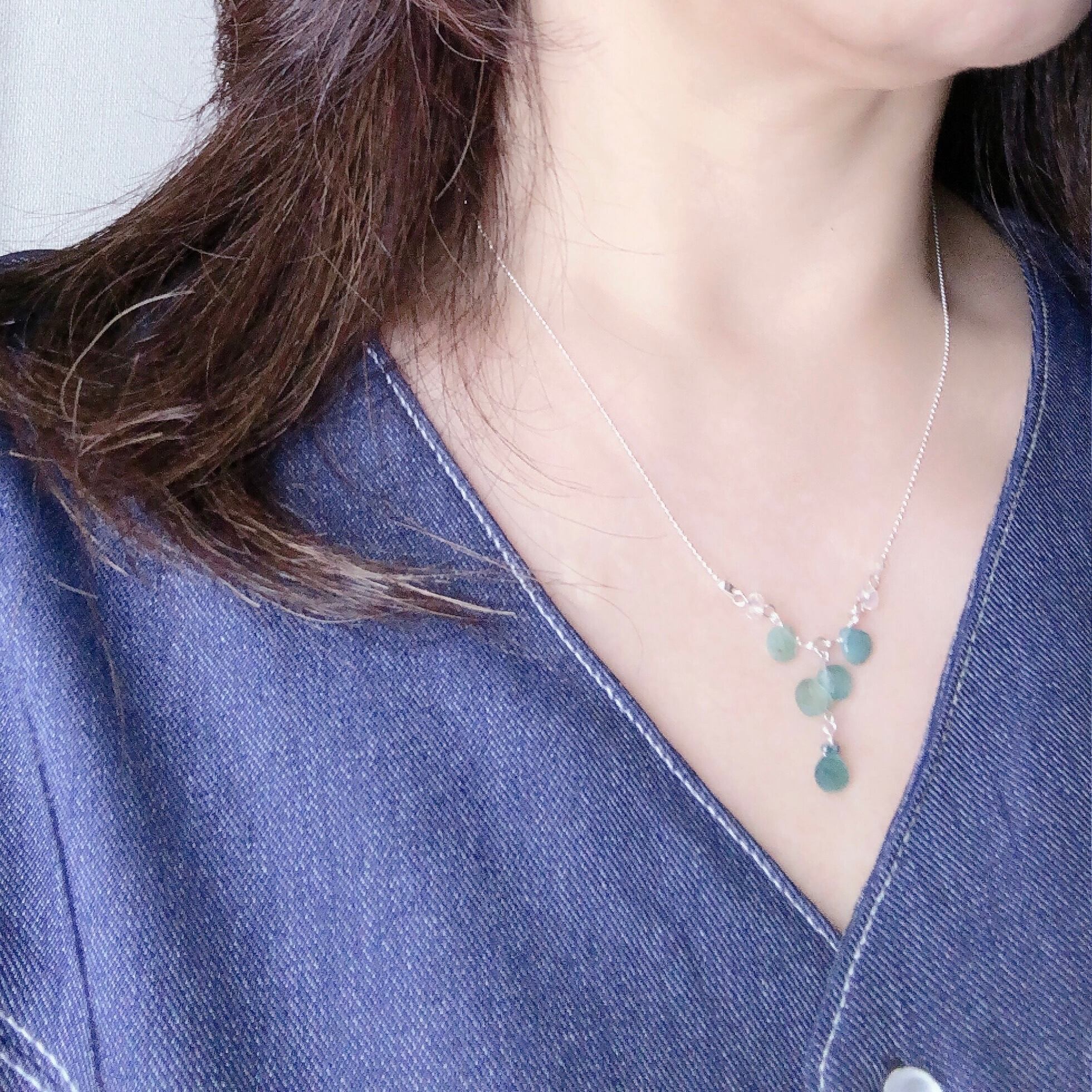 先端に下げた石には2ミリのブルーダイヤモンドをあしらってアクセントをつけました。