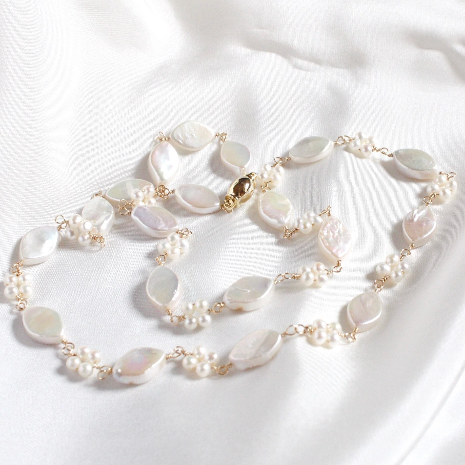 なめらかに流れる流線形のようなマーキス形の淡水パール。