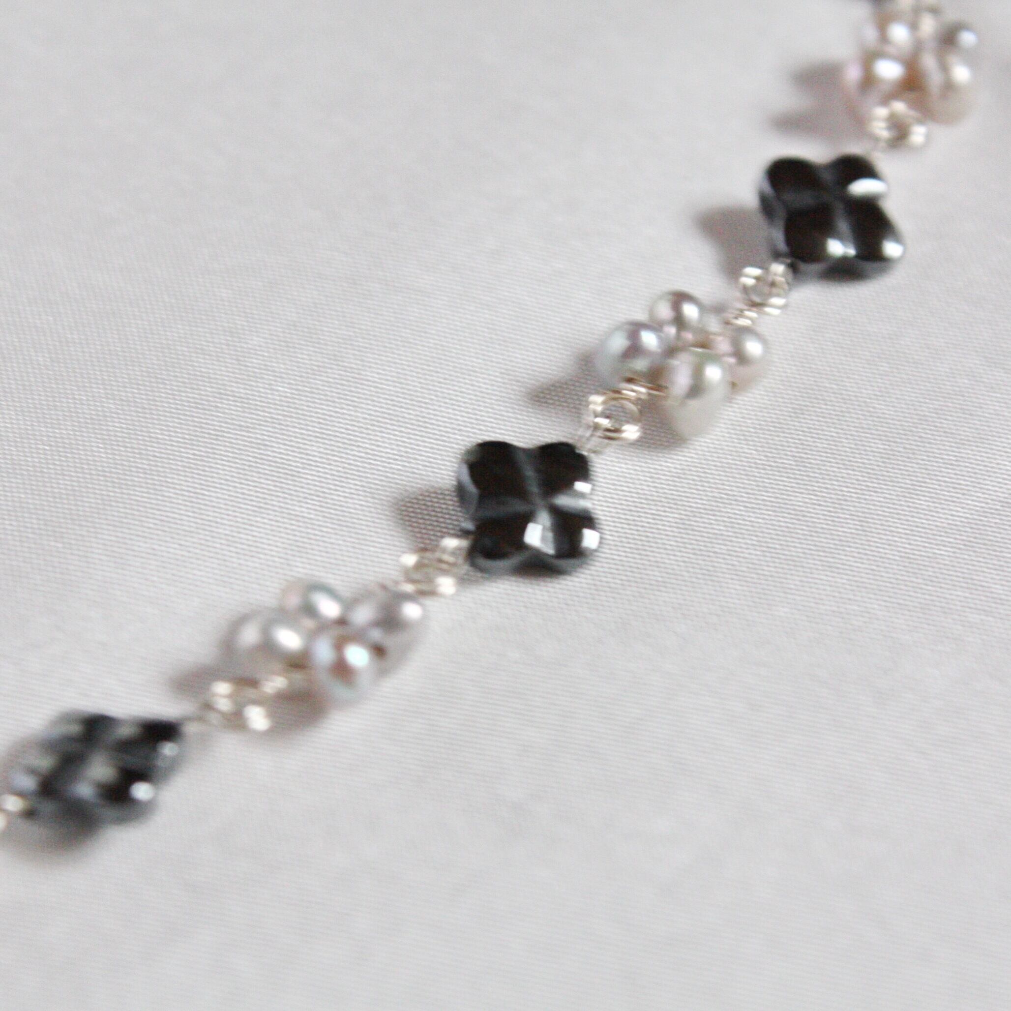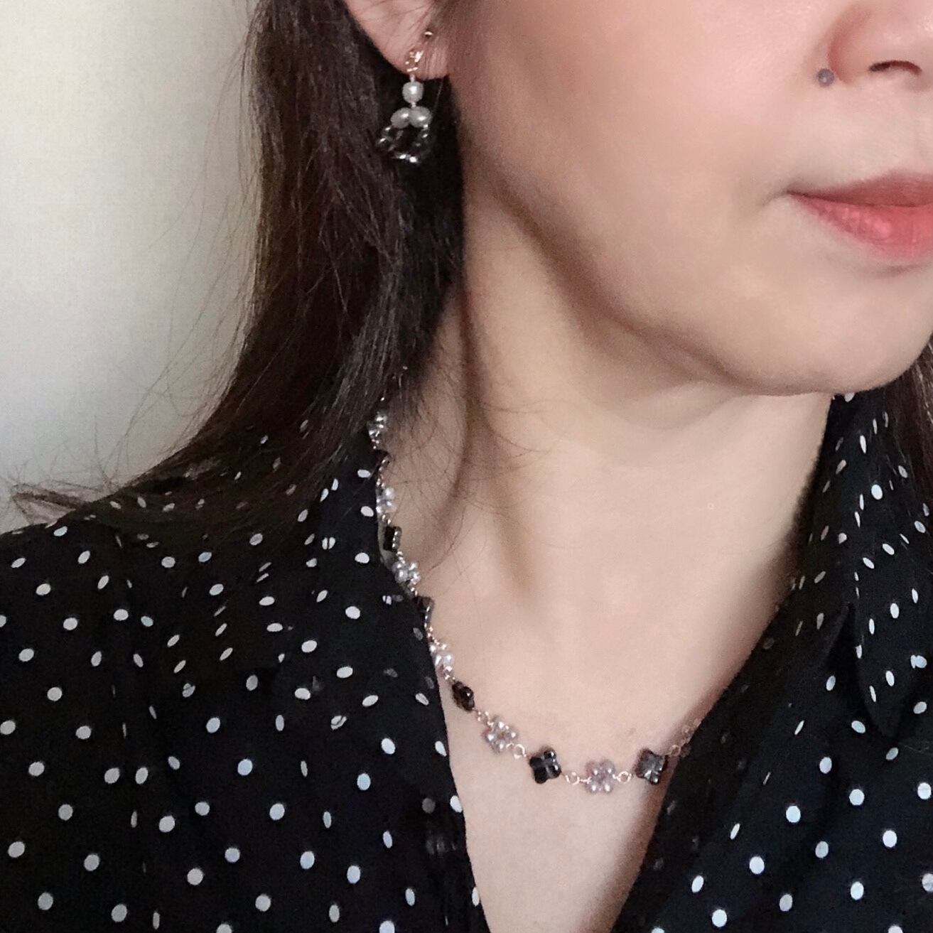 グレーの淡水パールと合わせて、シックな可愛さにしました。