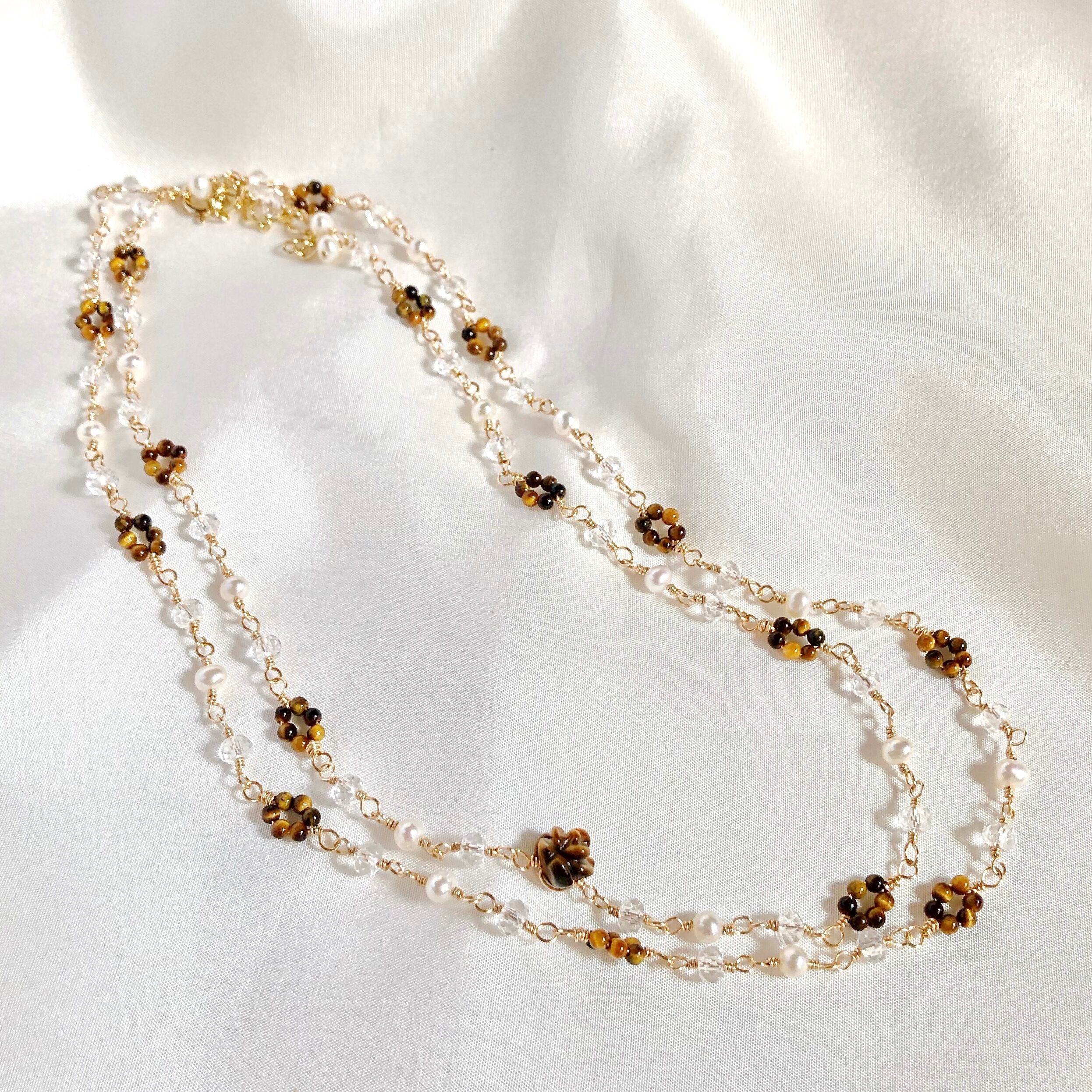 <素材>タイガーアイ ロッククリスタル 淡水パール 合金