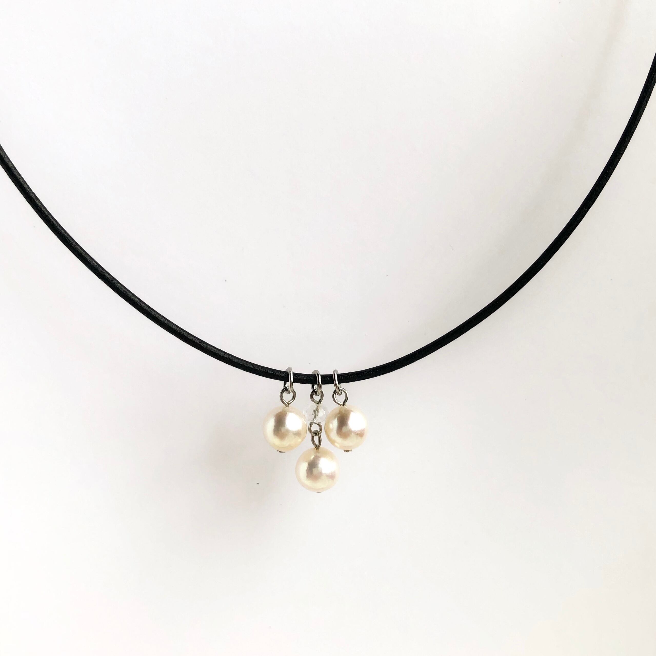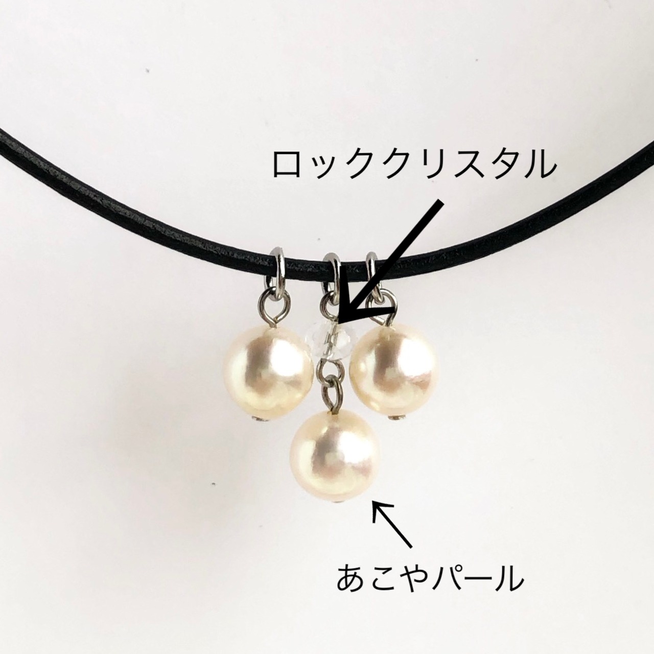 <素材> 天然石(あこやパール・ロッククリスタル) 本革 合金