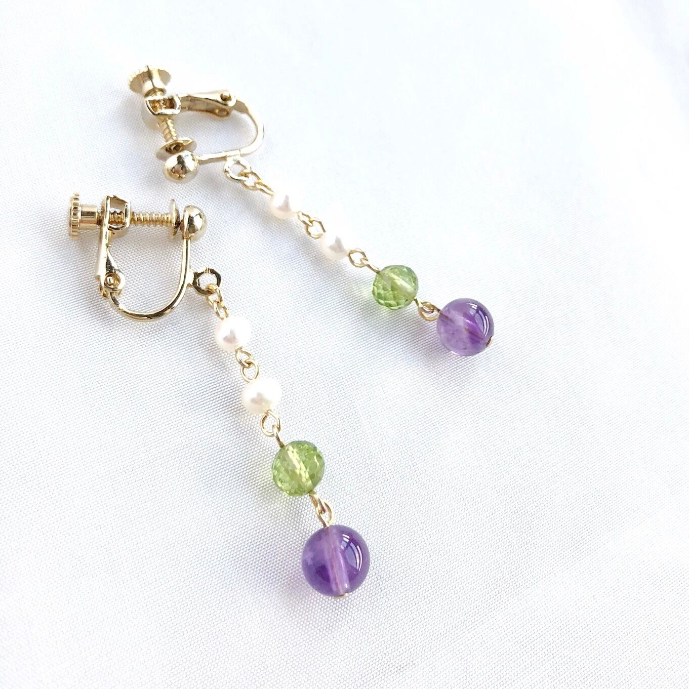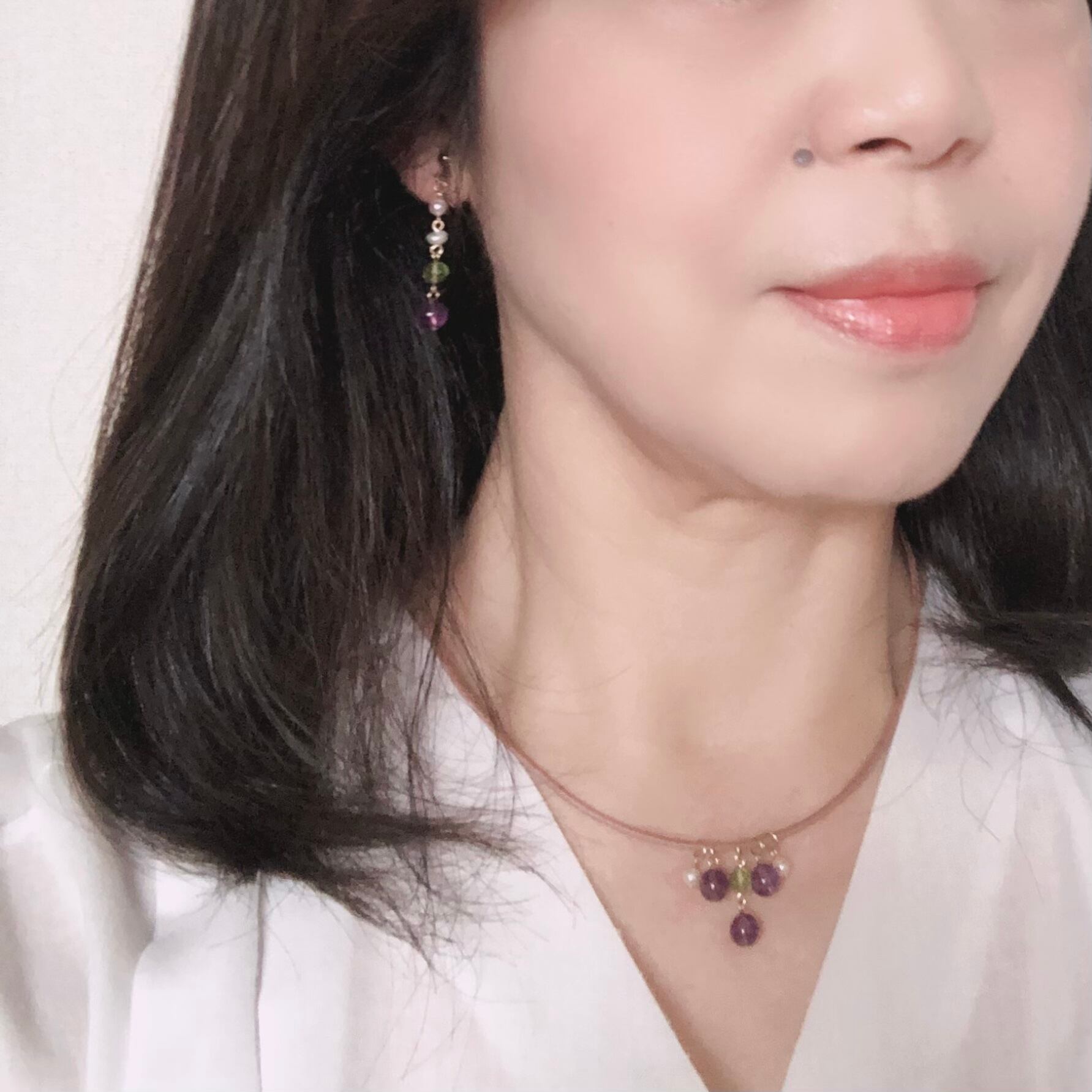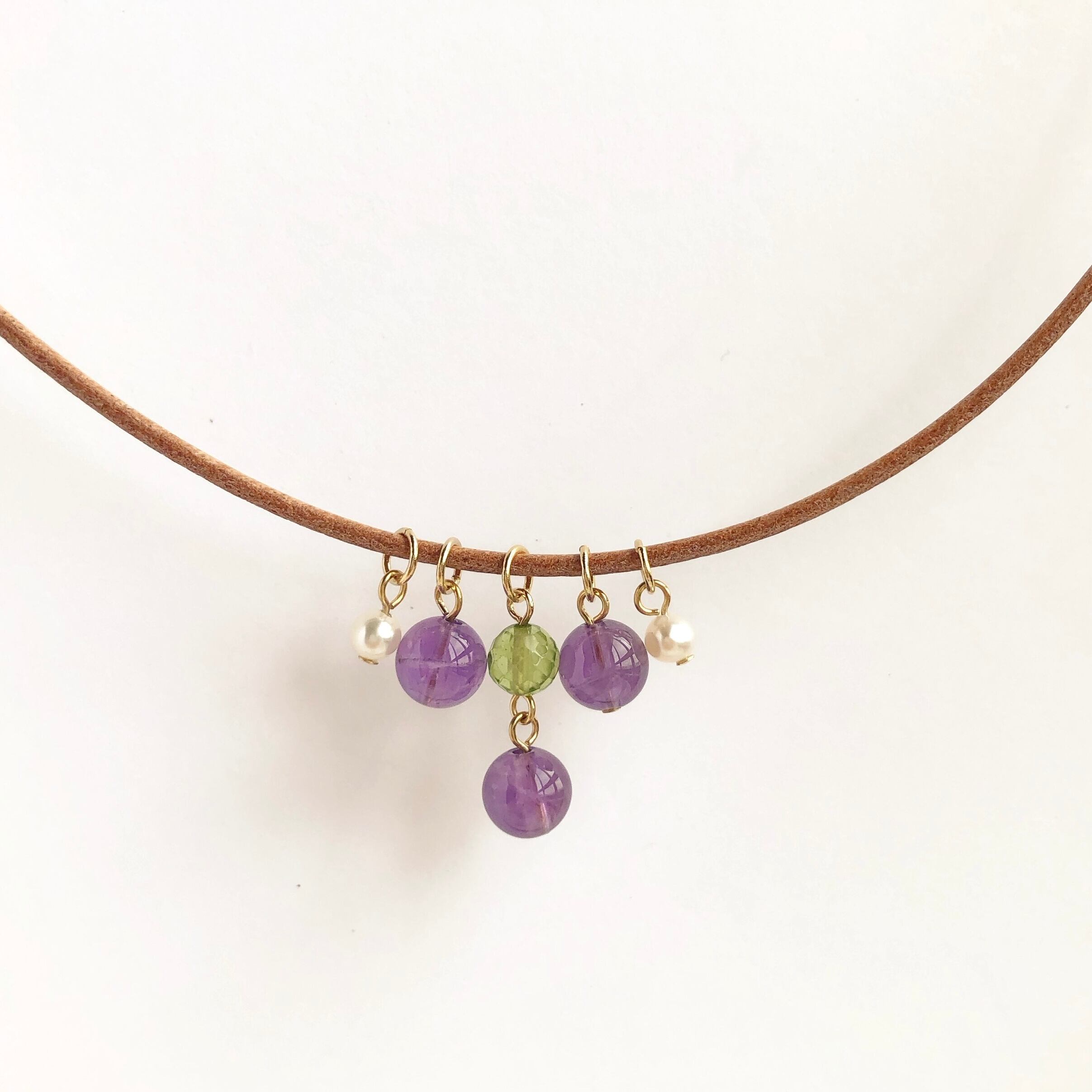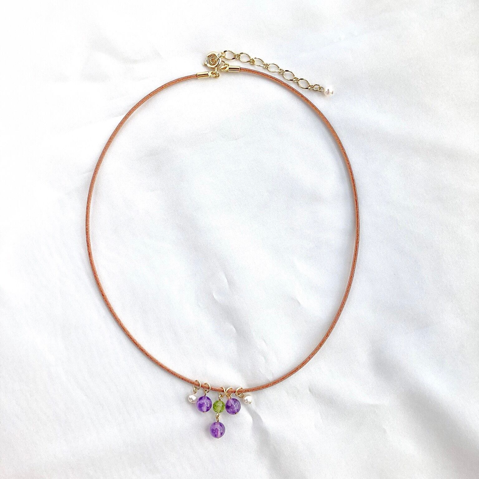 <素材> 天然石(アメジスト・ペリドット・淡水パール) 本革 合金