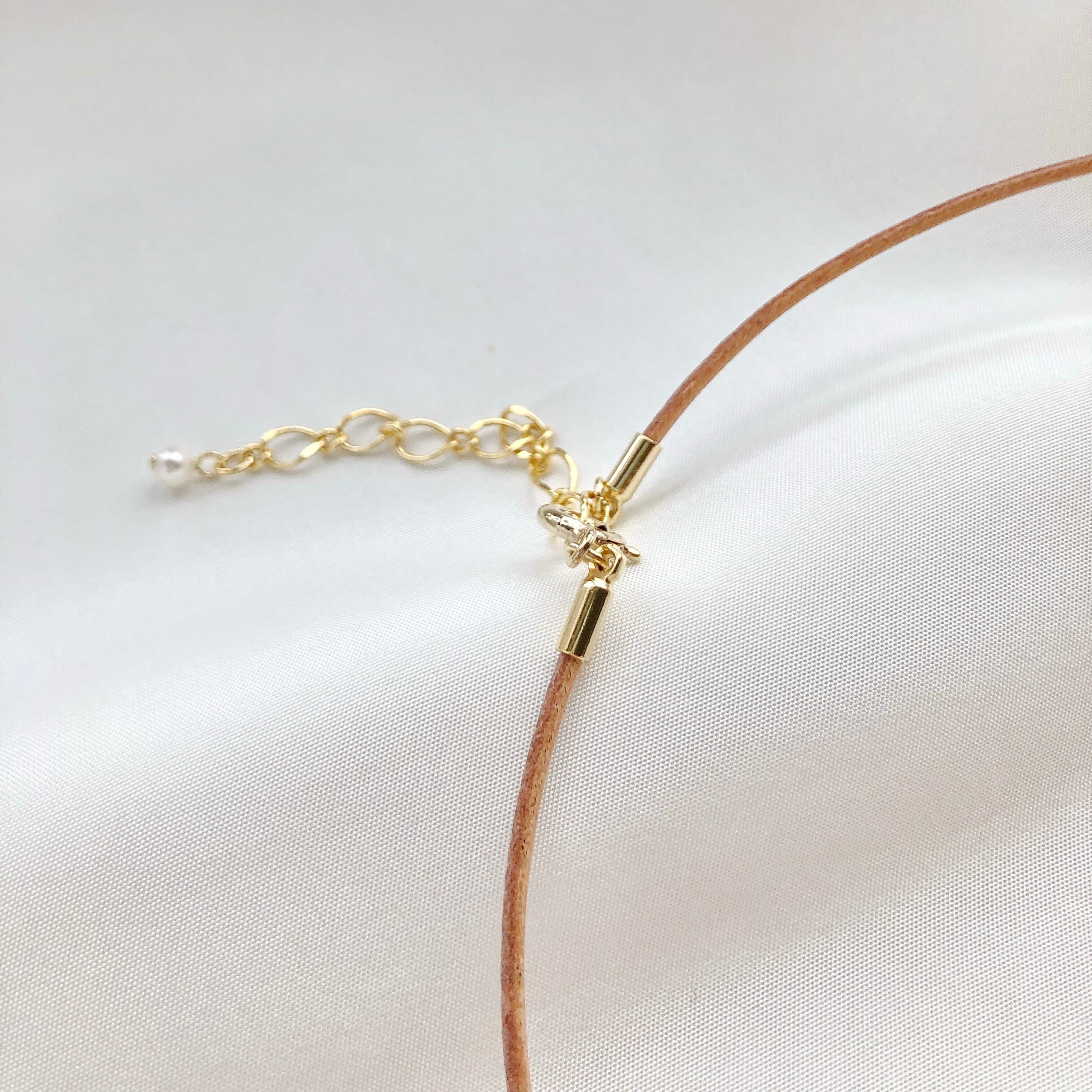 レザーコードはマットな質感で濃淡のついたベージュ。