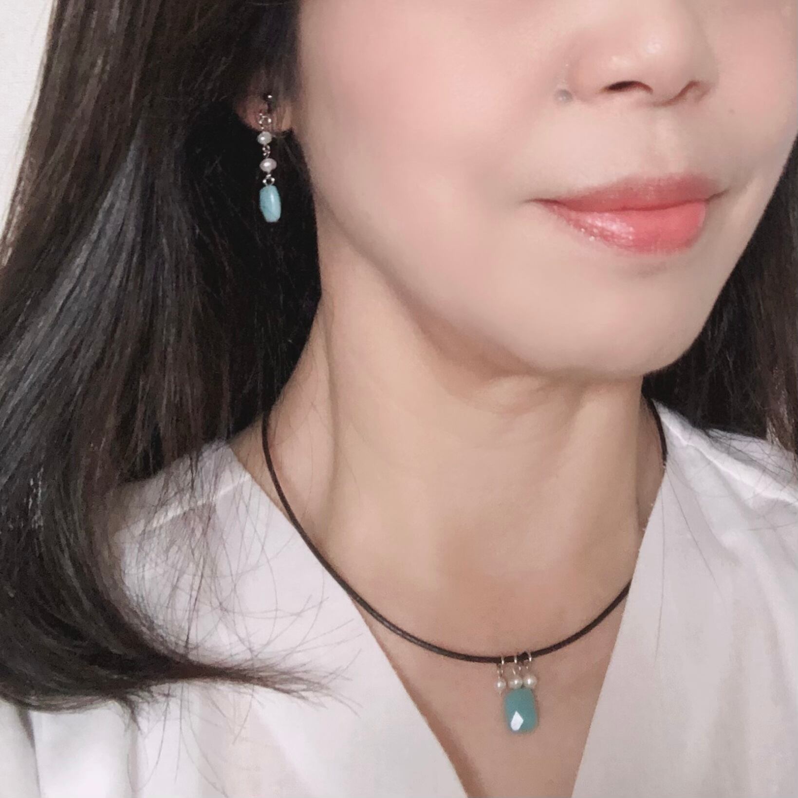 レザーコードネックレス アマゾナイトレクタングルミニ(別売)とお揃いです。(画像6枚目)