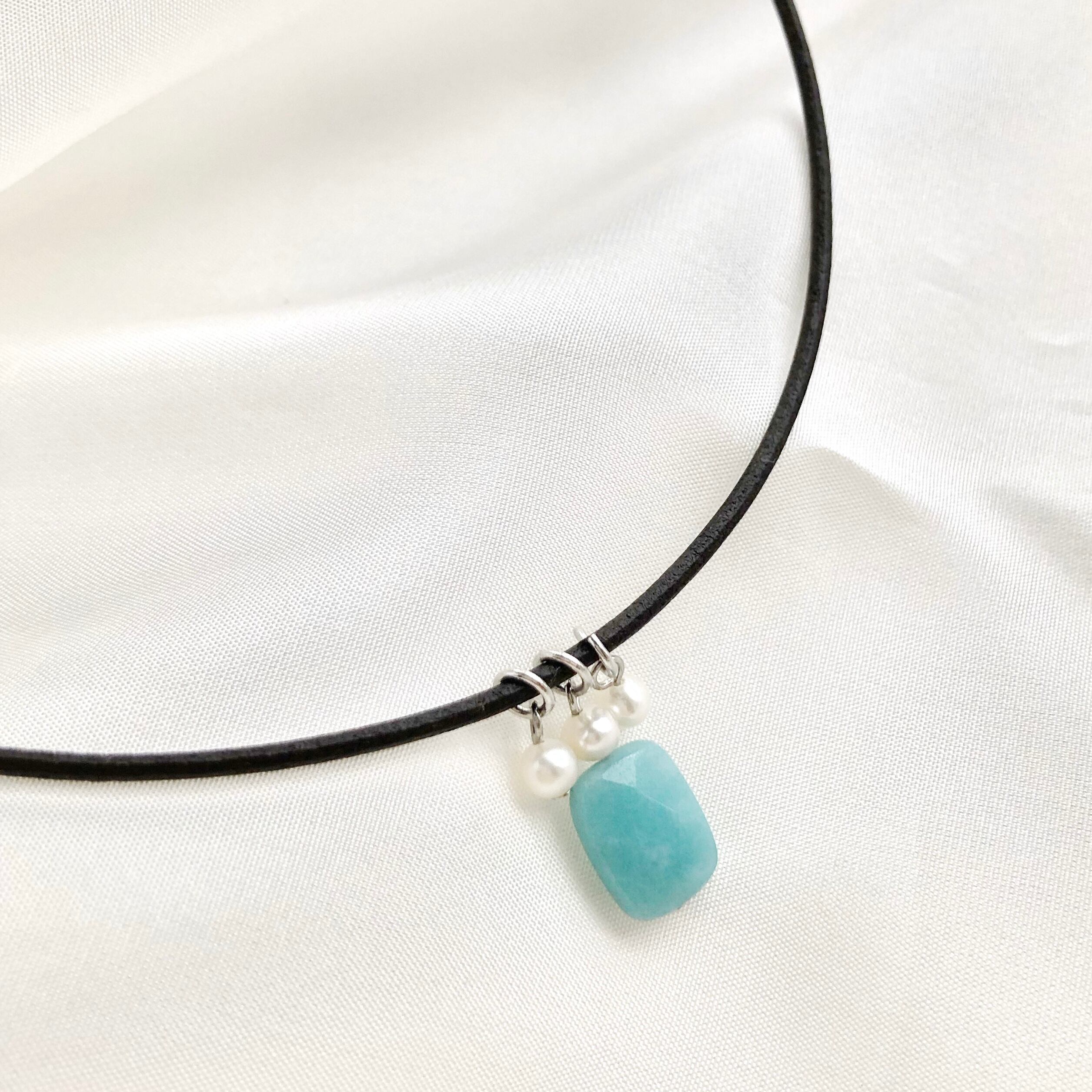 レザーコードネックレス アマゾナイトレクタングルミニ