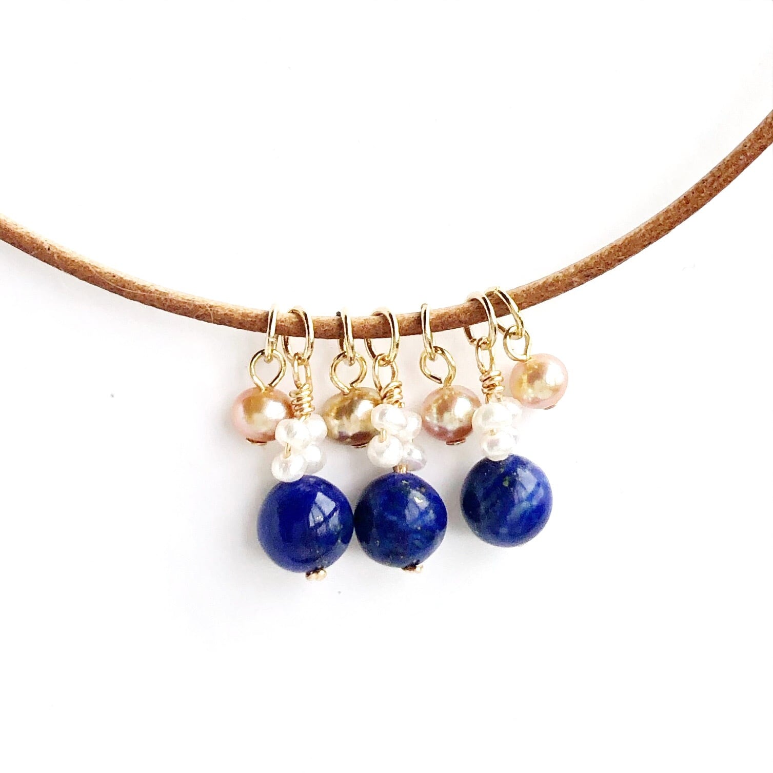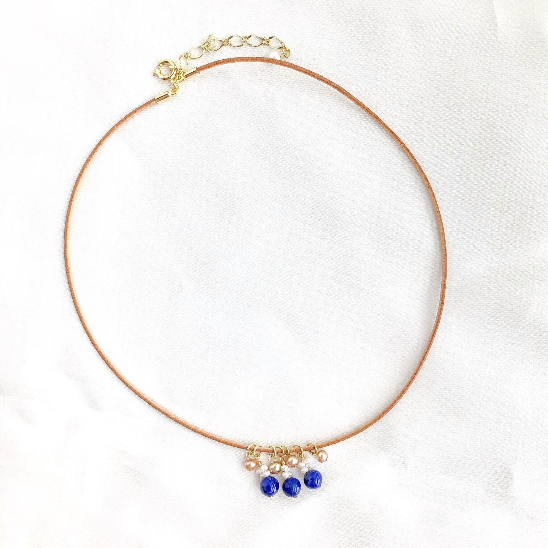 <素材> 天然石(ラピスラズリ・淡水パール) 本革 合金