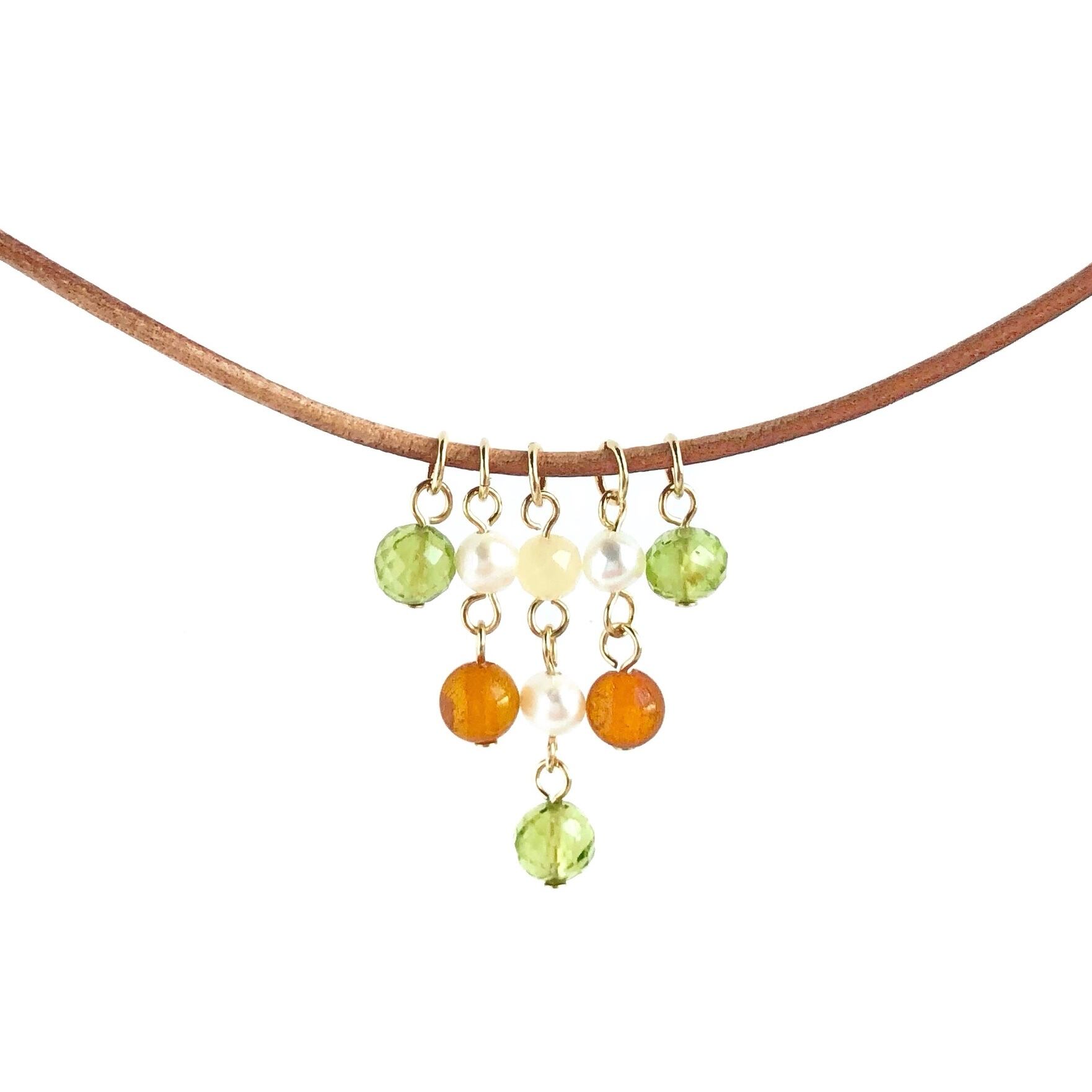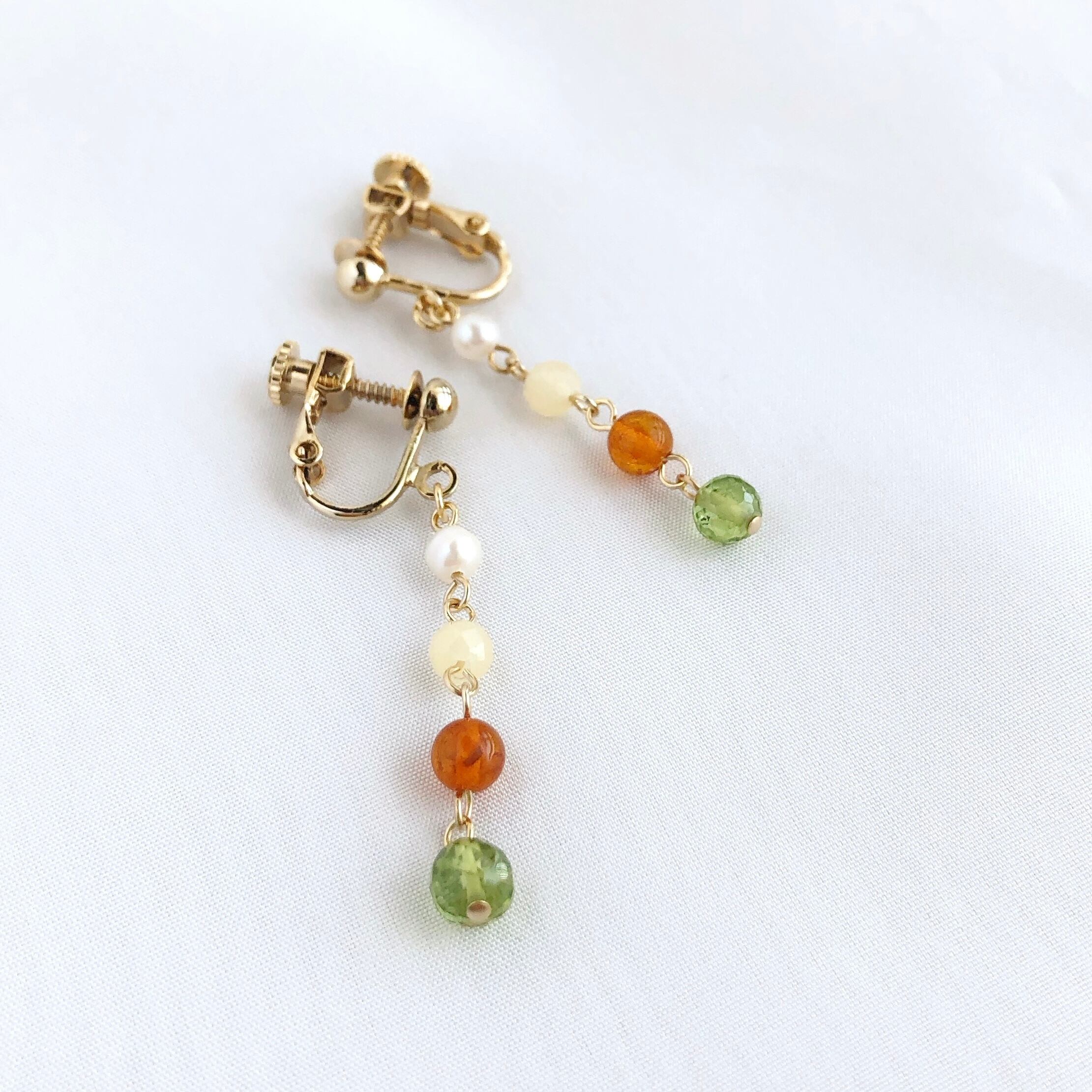 <素材> 天然石(ペリドット・こはく・イエロージェイド・淡水パール) 本革 合金