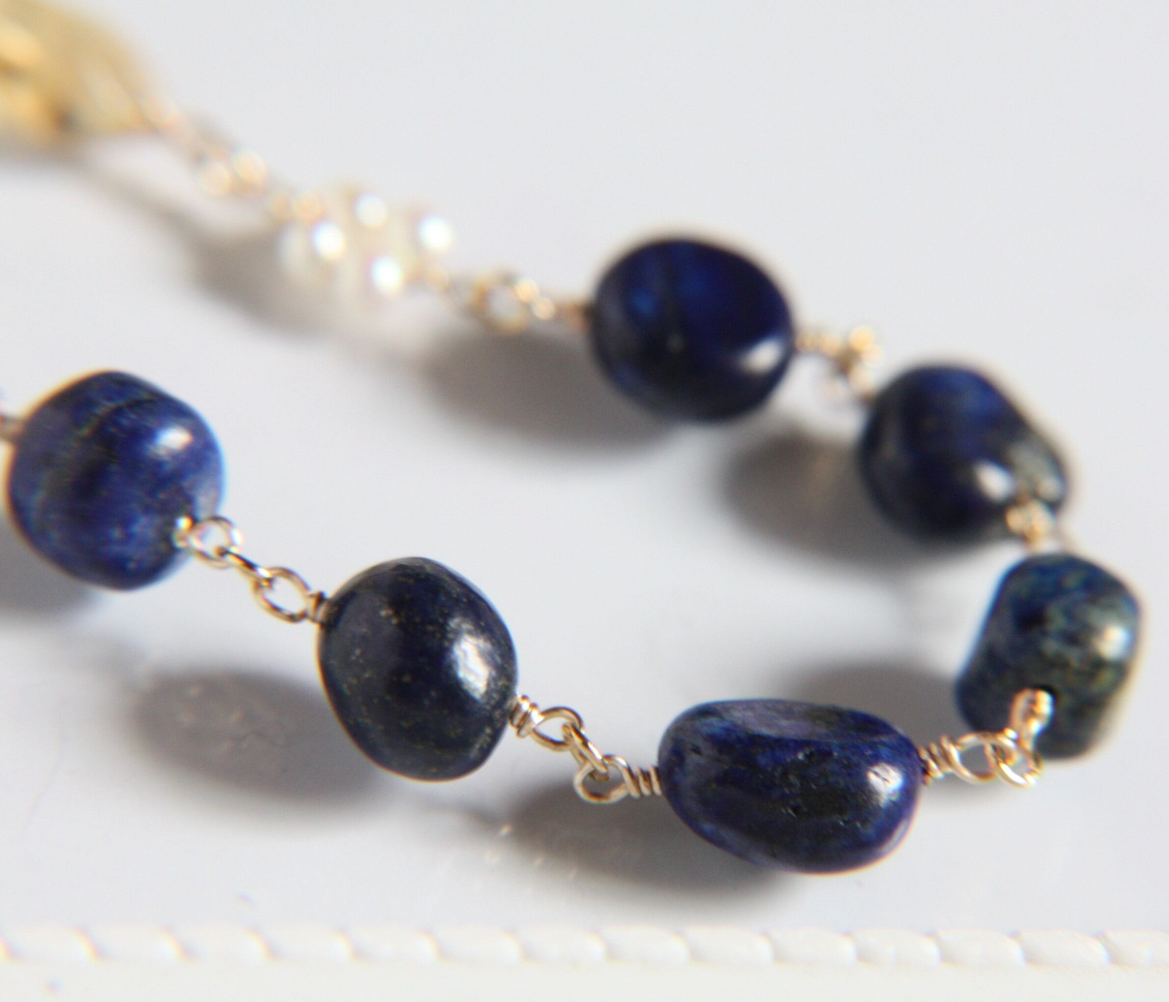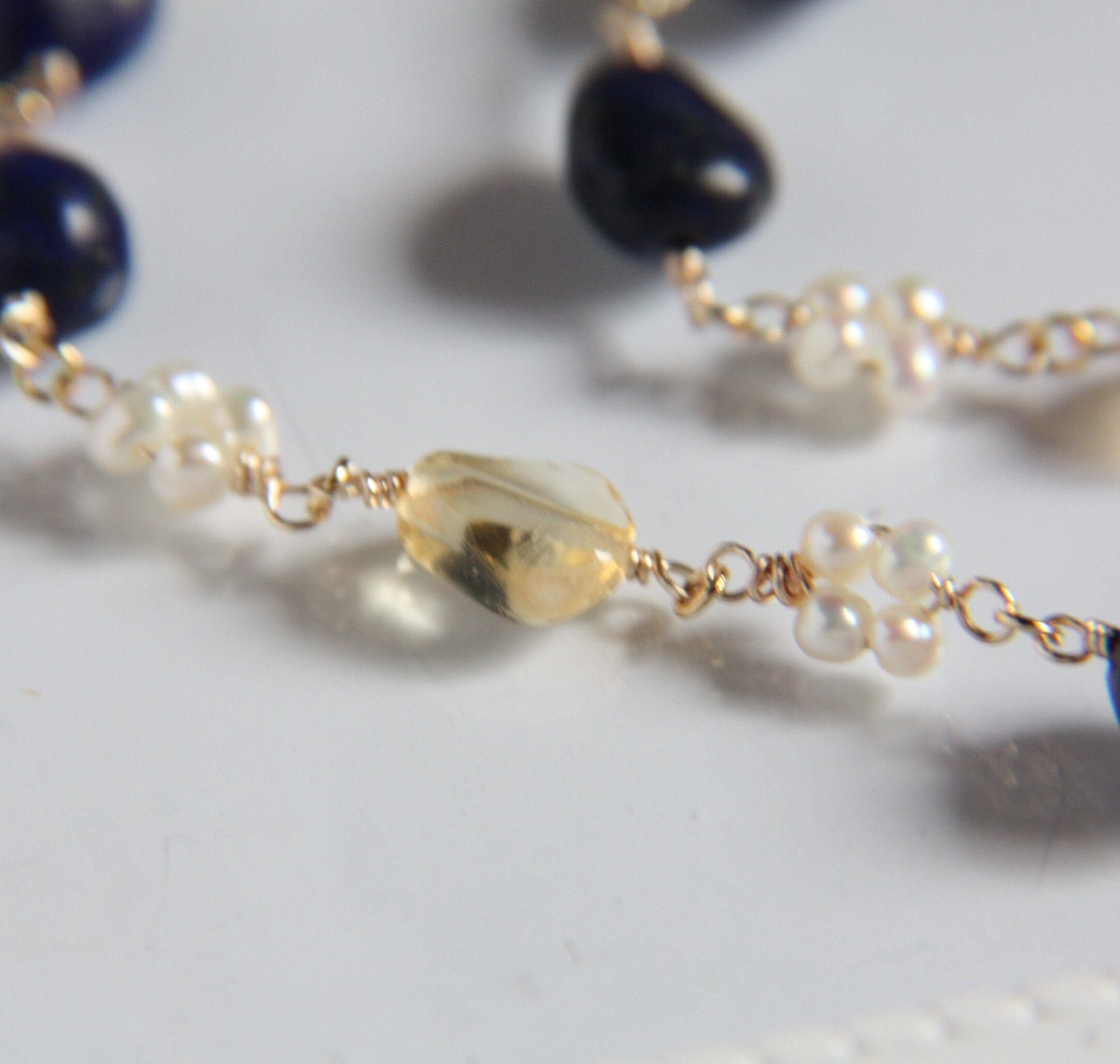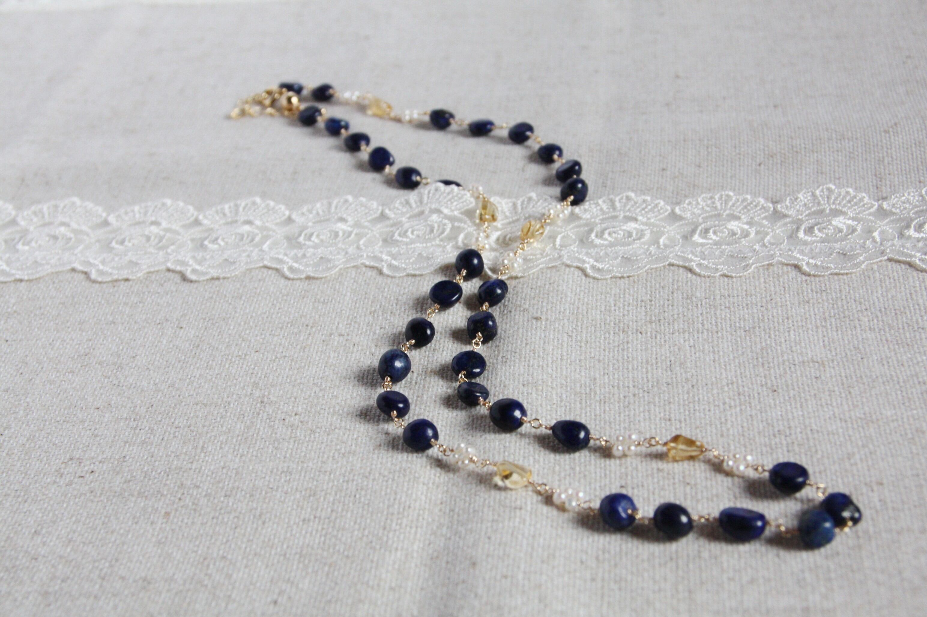 深いブルーのラピスラズリと黄金色のシトリンを使ったネックレスです。