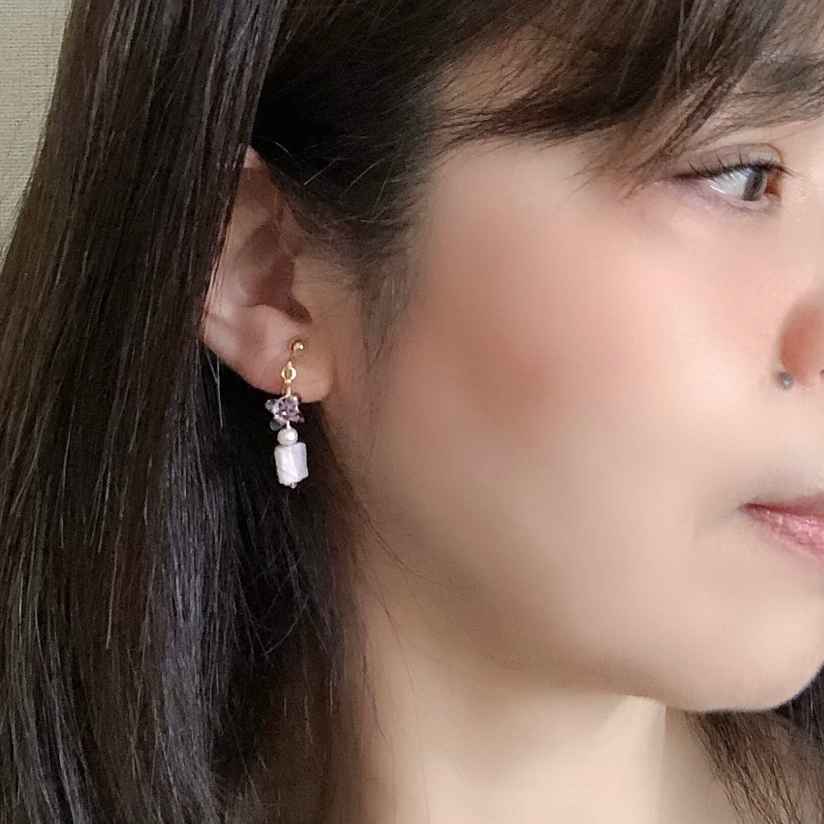 ラベンダー色のアメジストが優しい雰囲気のイヤリングです。