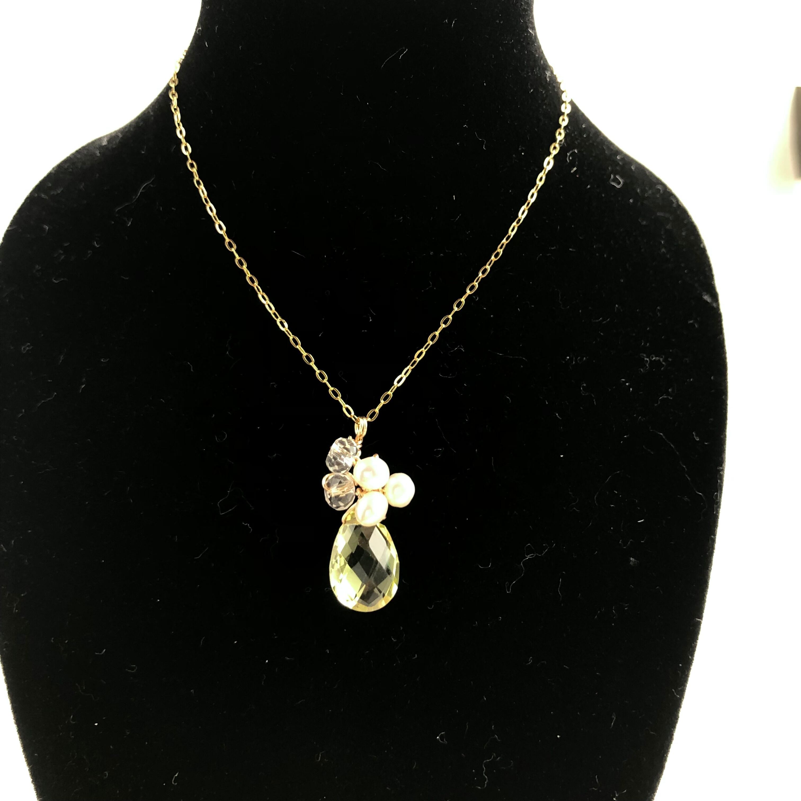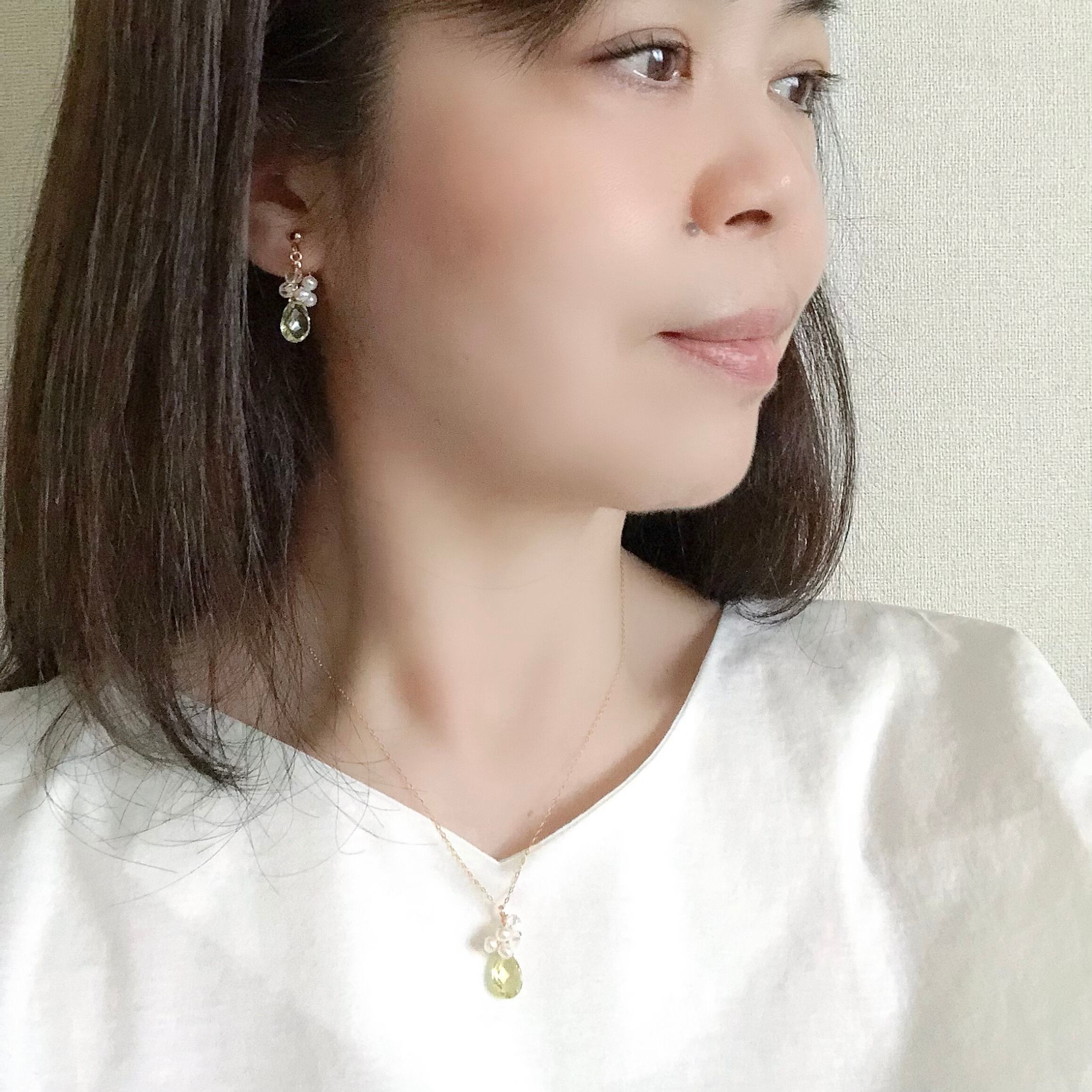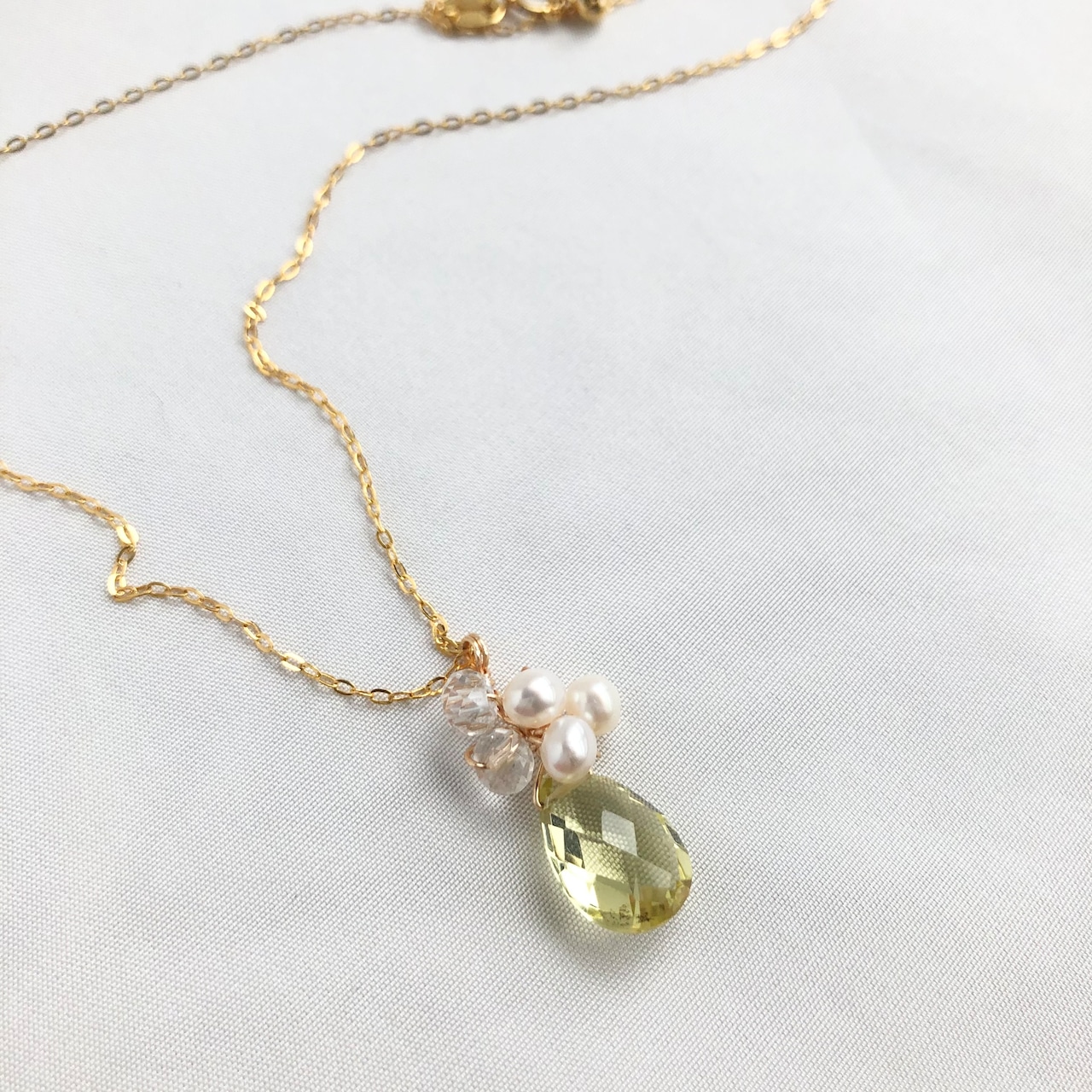 <素材> 天然石(レモンクオーツ・ロッククリスタル・淡水パール) 合金