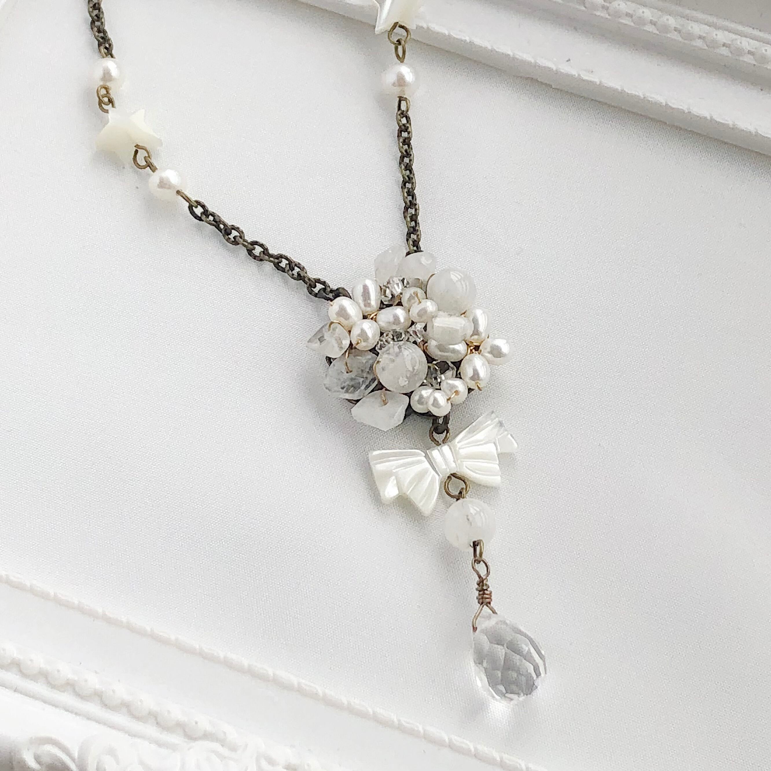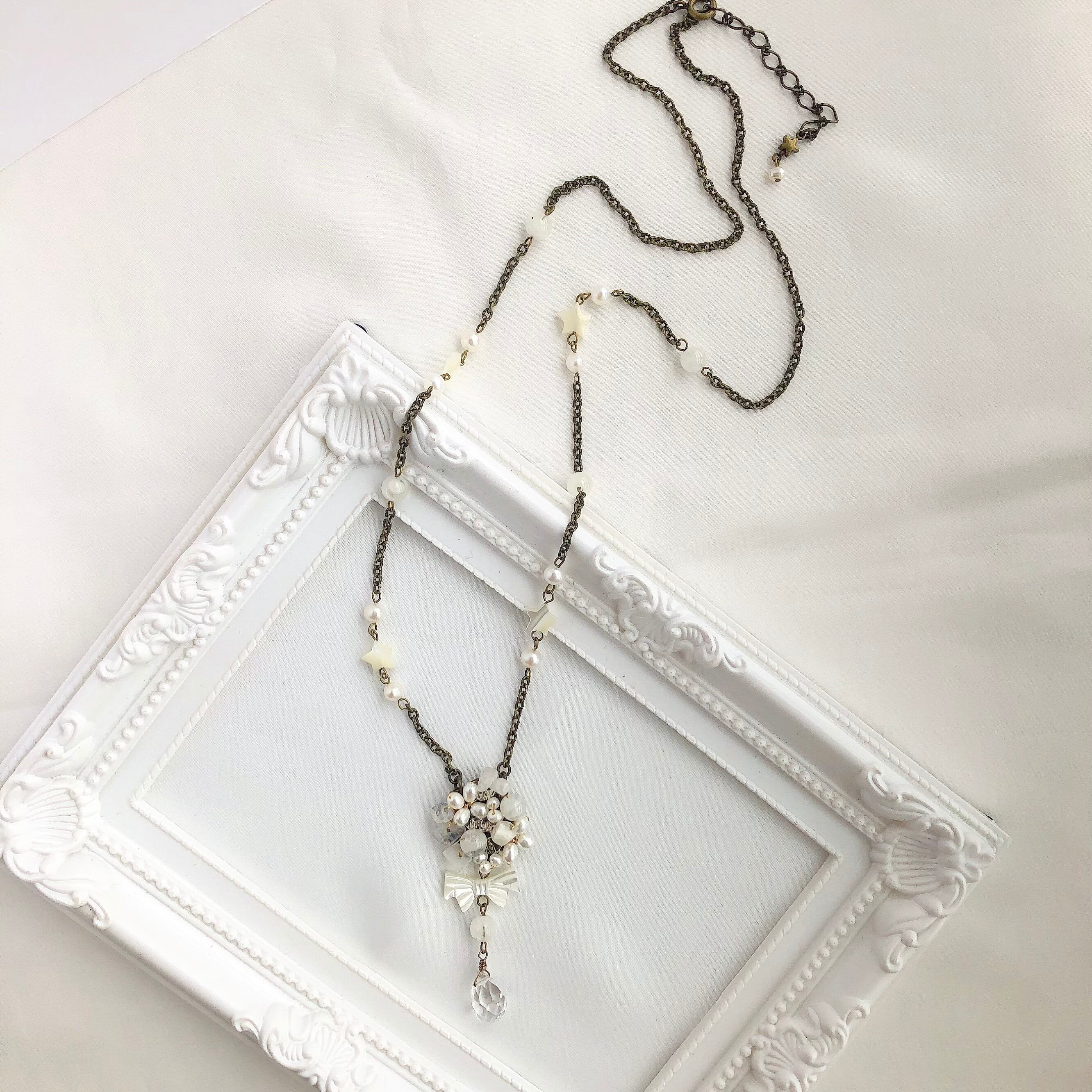 マザーオブパール星とリボンのネックレス